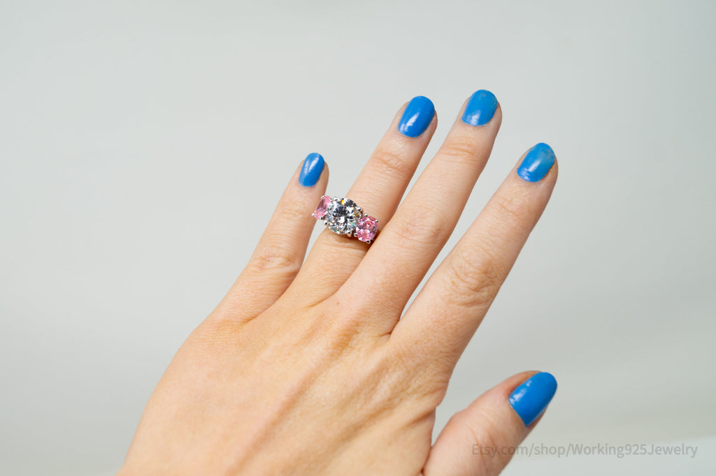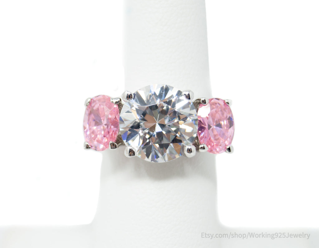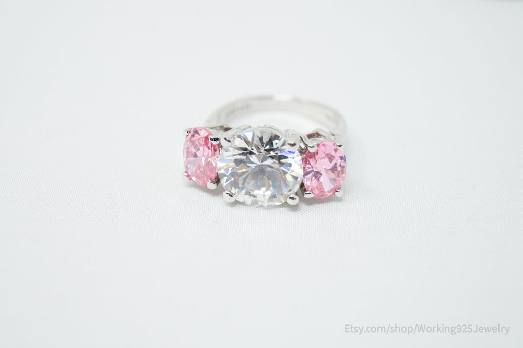 Vintage Designer Pink Topaz Cz Statement Ring Sterling Silver - Size 5.75