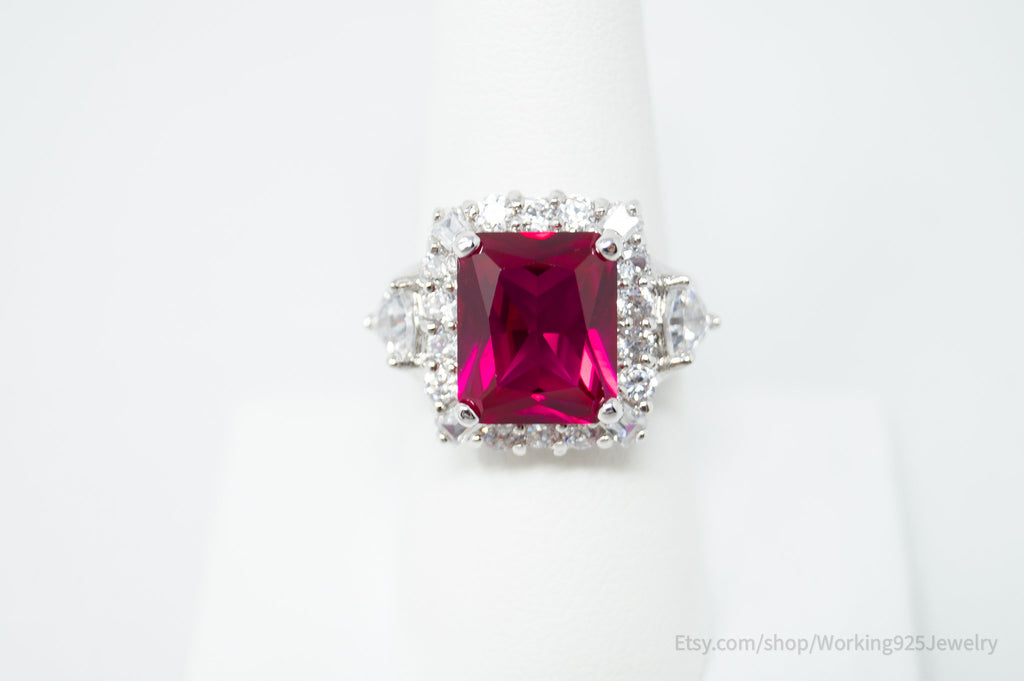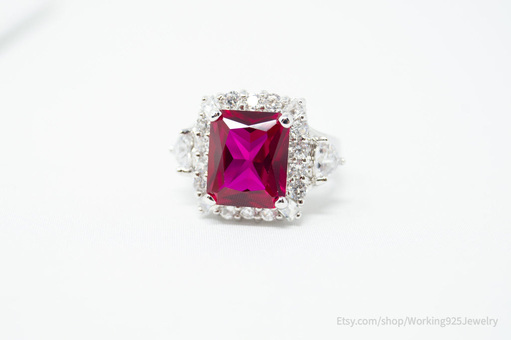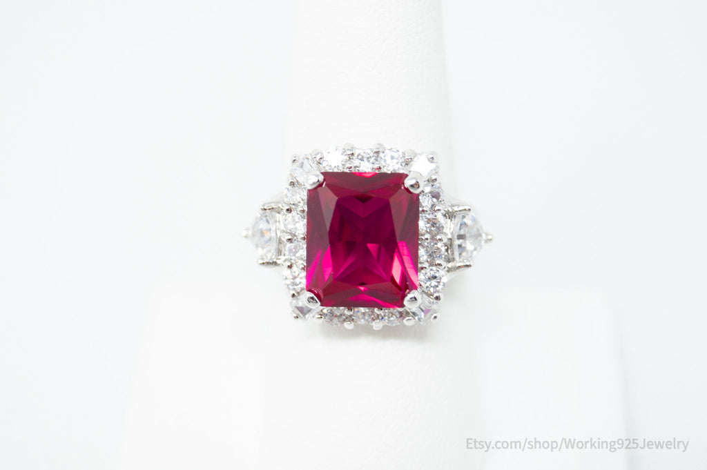 Vintage Designer Pink Topaz CZ Statement Sterling Silver Ring - Size 7.75