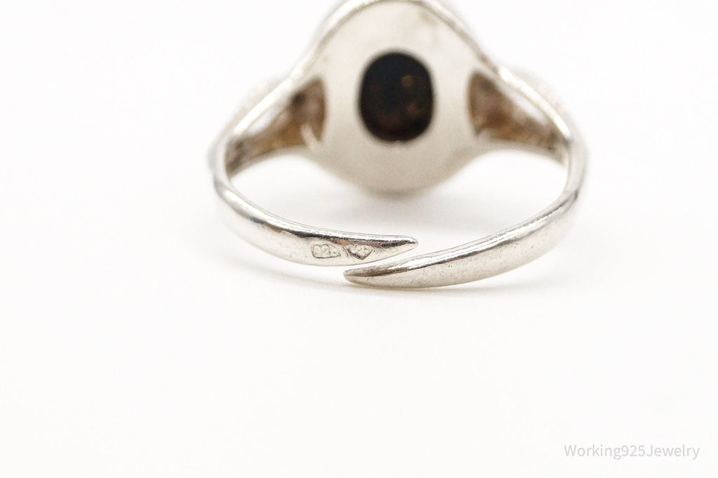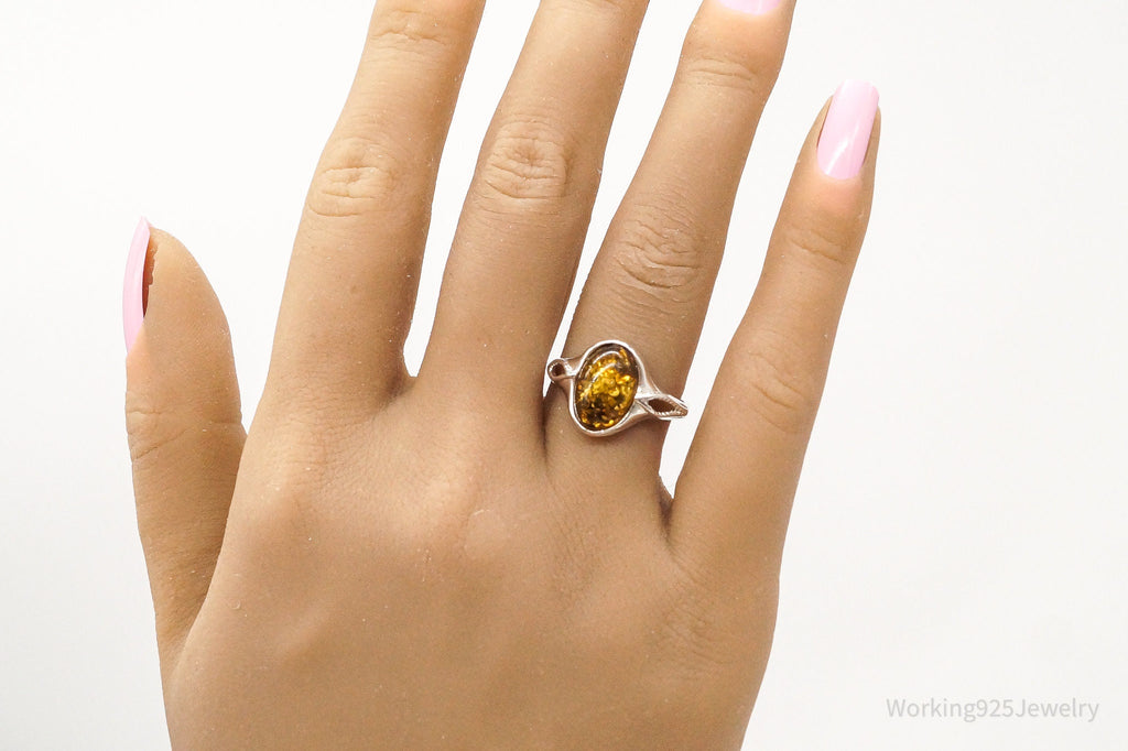 Vintage Designer PS Amber Modernist Sterling Silver Ring - Sz 7.5 Adjustable