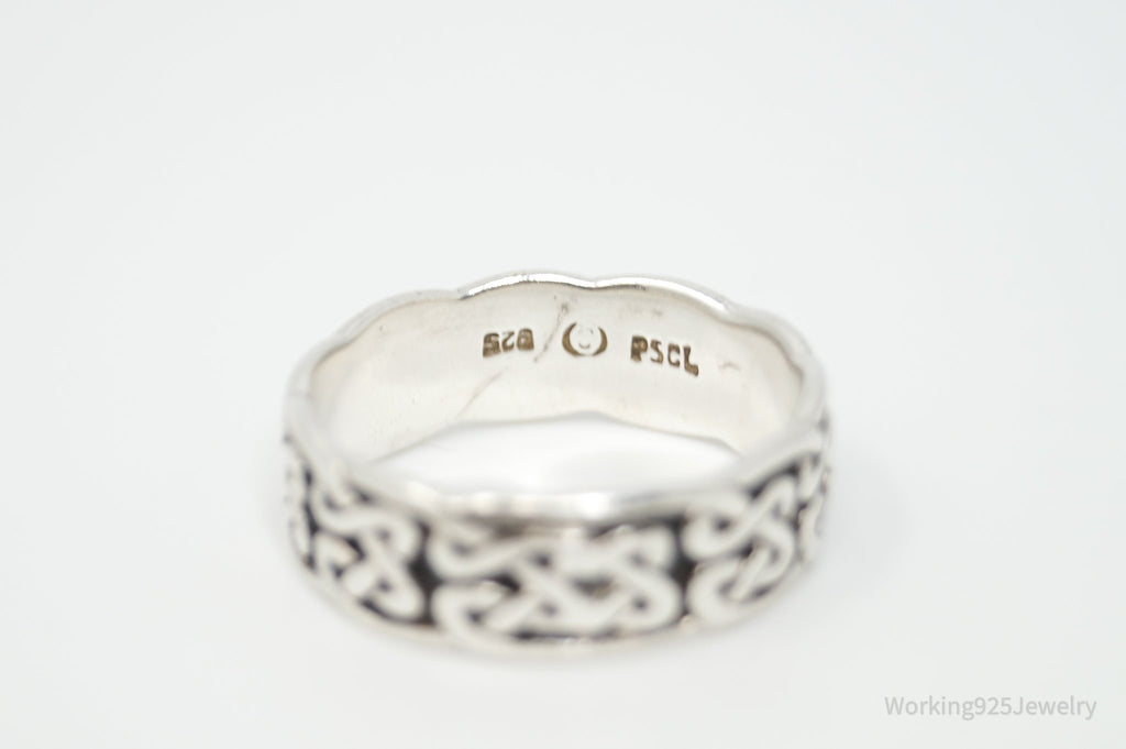 Vintage Designer PSCL Celtic Knot Design Sterling Silver Band Ring - Sz 9.75