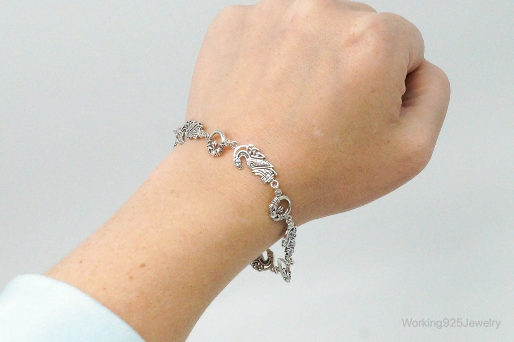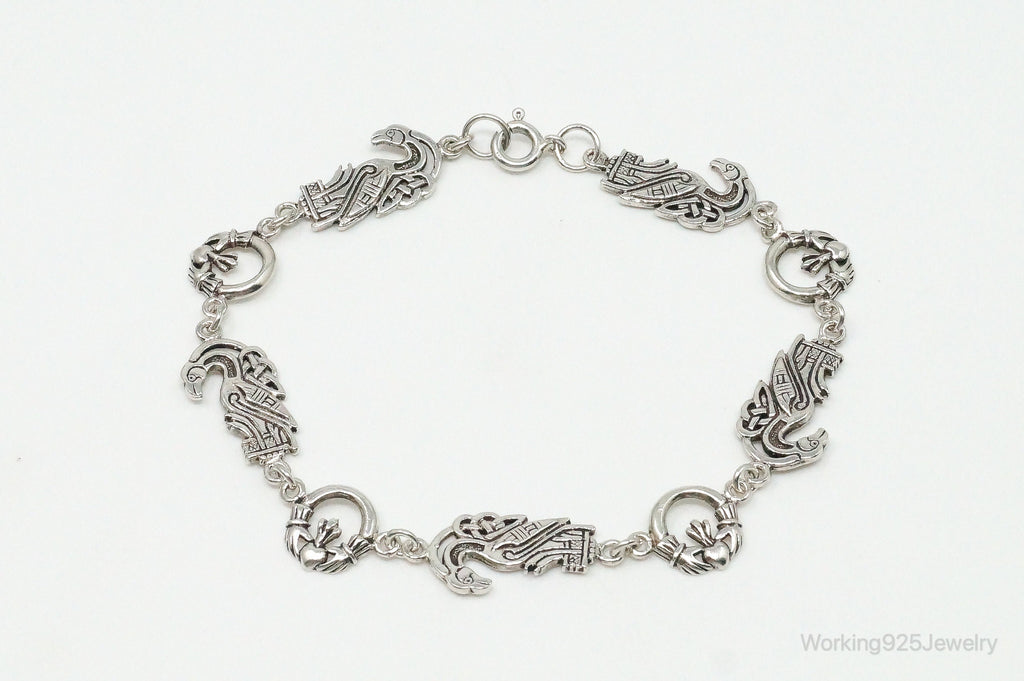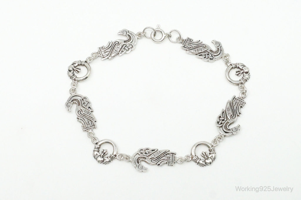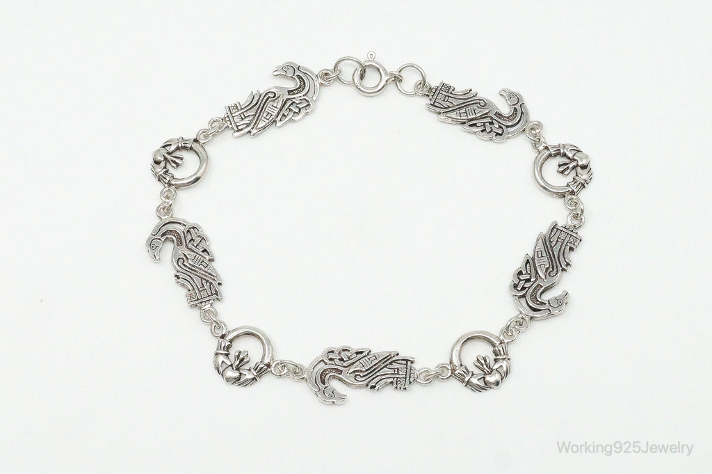 Vintage Designer PSCL Claddagh Celtic Knot Cut Out Sterling Silver Bracelet
