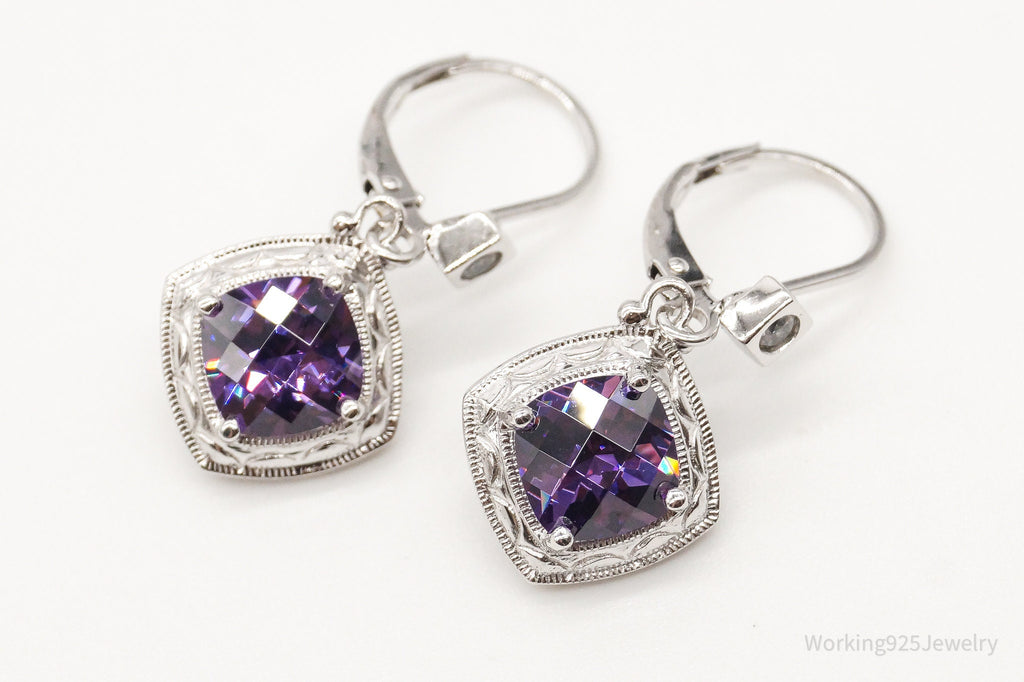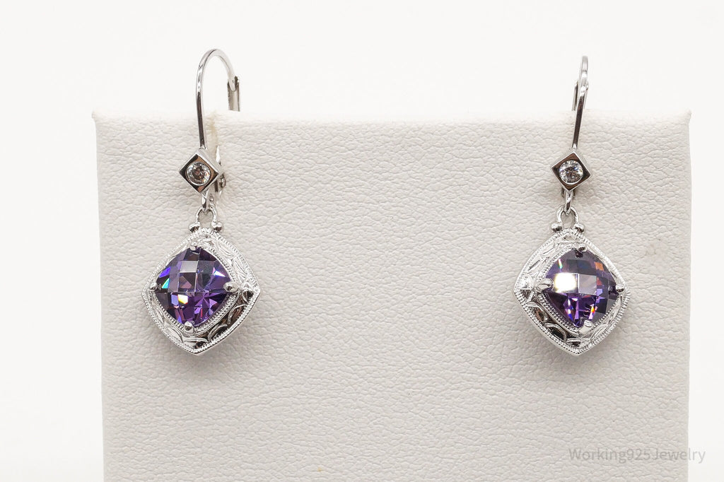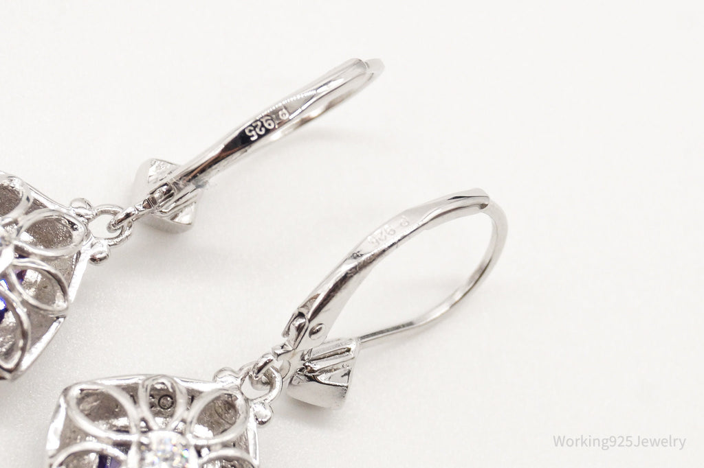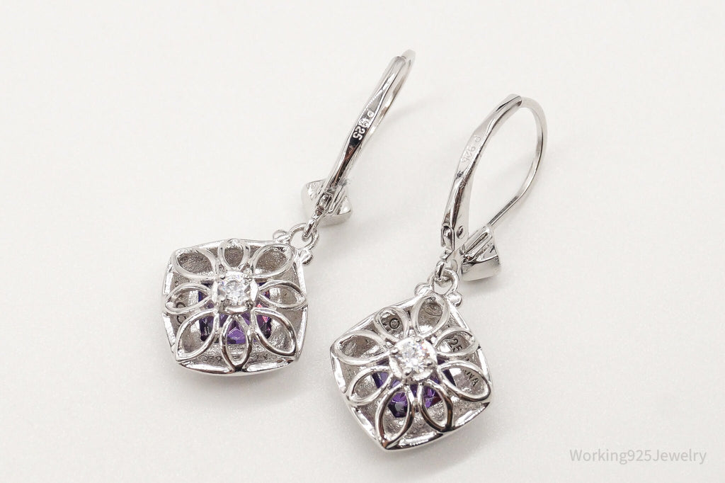 Vintage Designer Purple & White Cubic Zirconia Sterling Silver Earrings