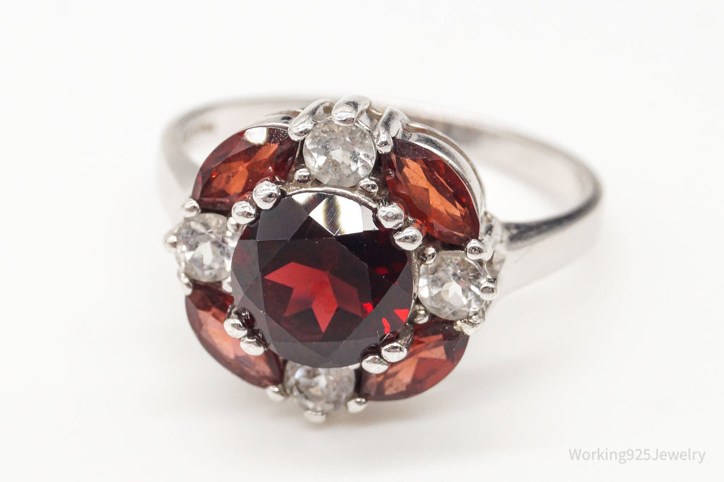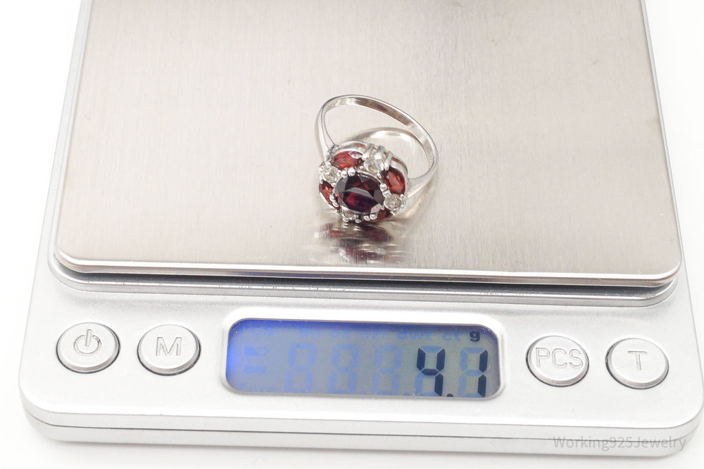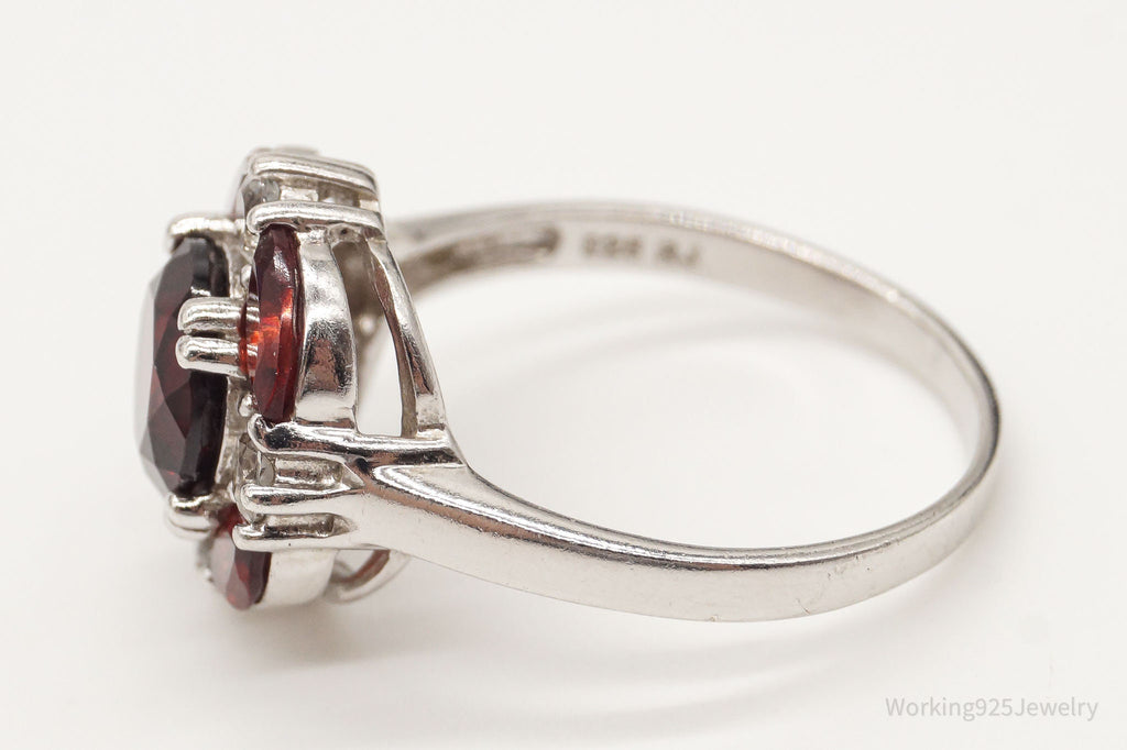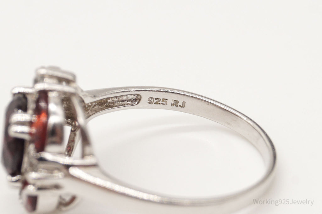 Vintage Designer RJ Garnet Cubic Zirconia Sterling Silver Ring - Size 9