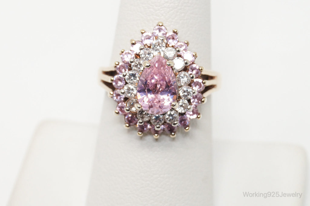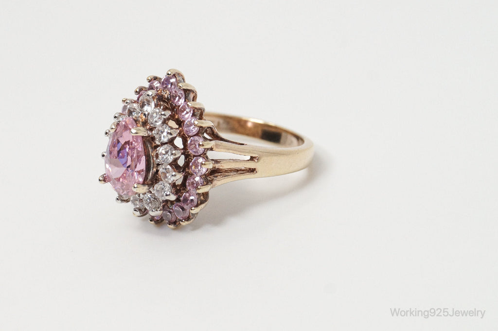 Vintage Designer RJ Gold Vermeil Pink CZ Sterling Silver Ring - Size 7
