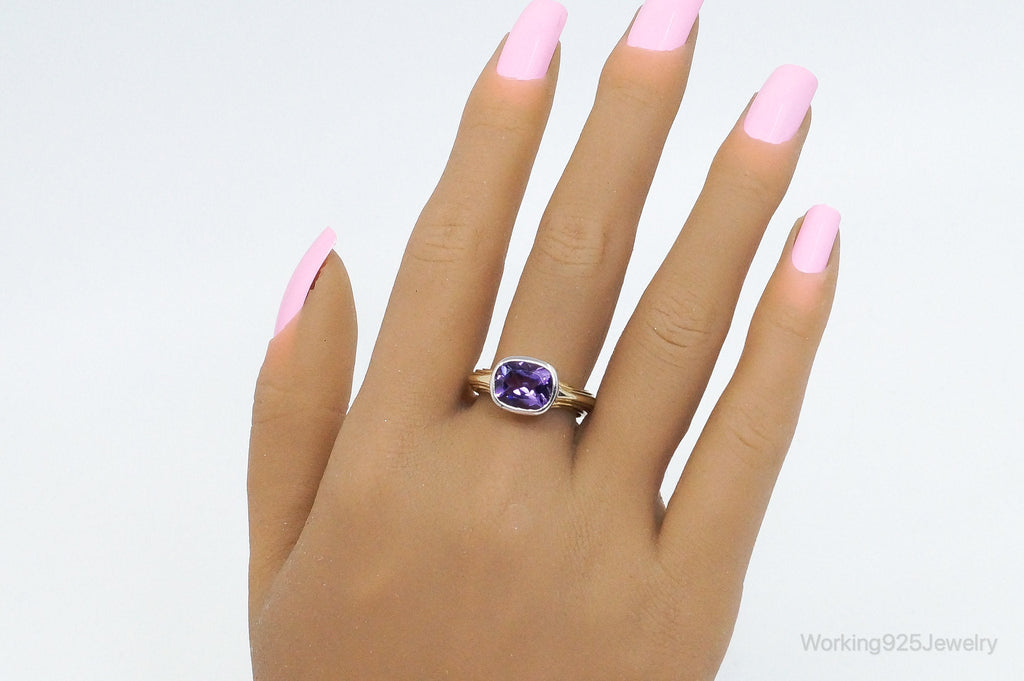 Vintage Designer RJC Amethyst Gold Vermeil Sterling Silver Ring SZ 8