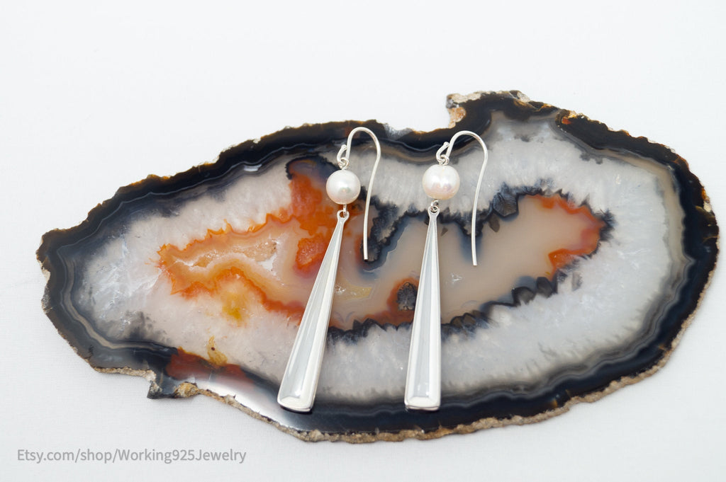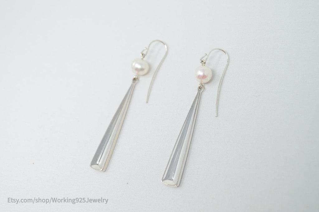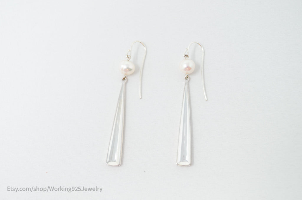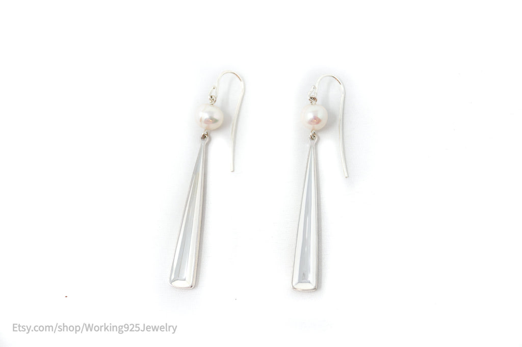 Vintage Designer Robert Lee Morris RLM Modernist Pearl Sterling Silver Earrings