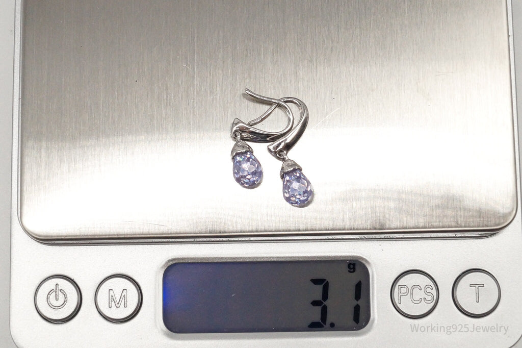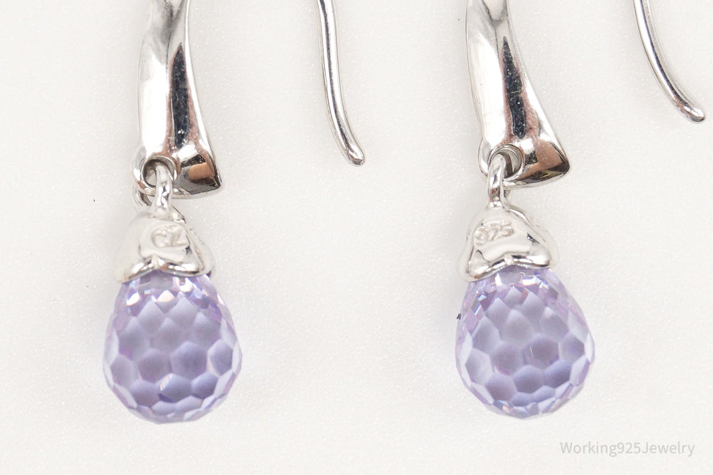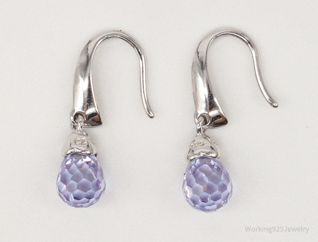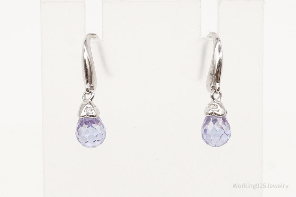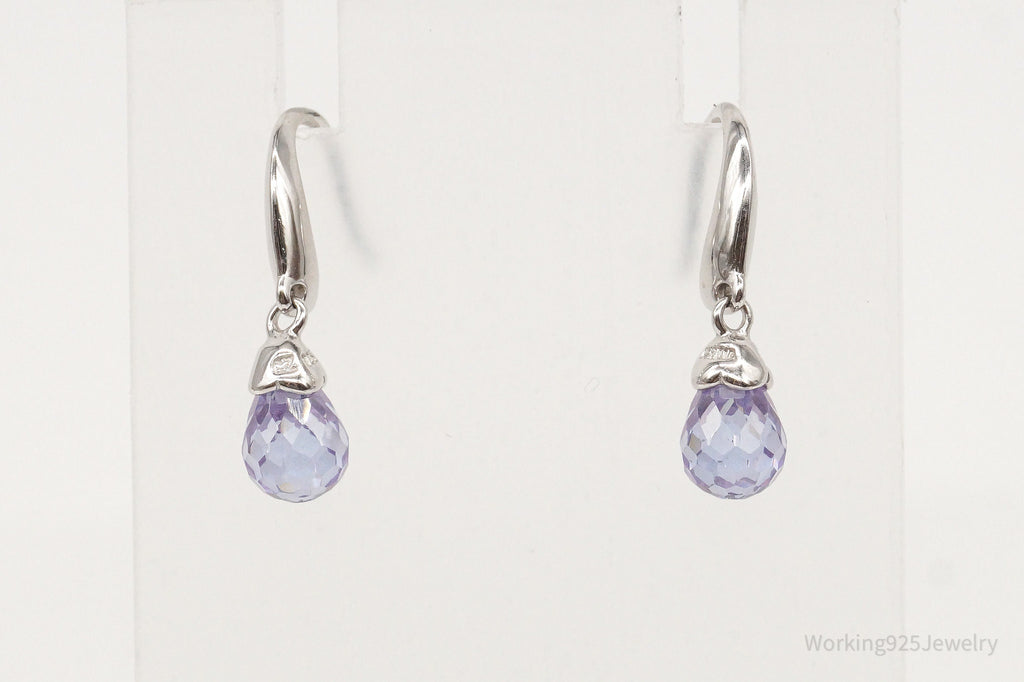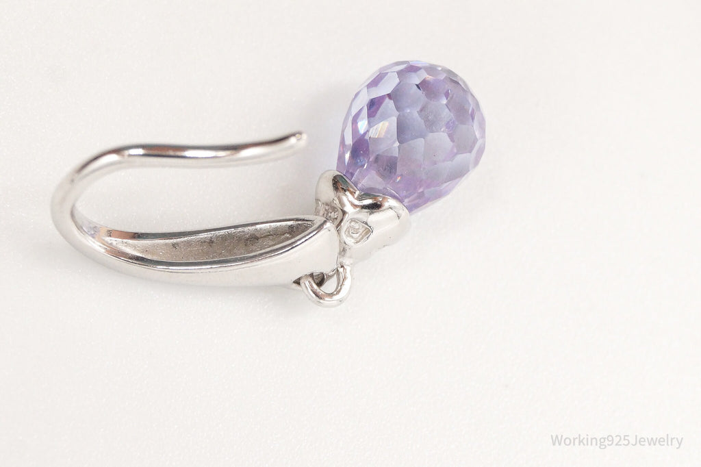 Vintage Designer Ross Simons Purple Cubic Zirconia Sterling Silver Earrings