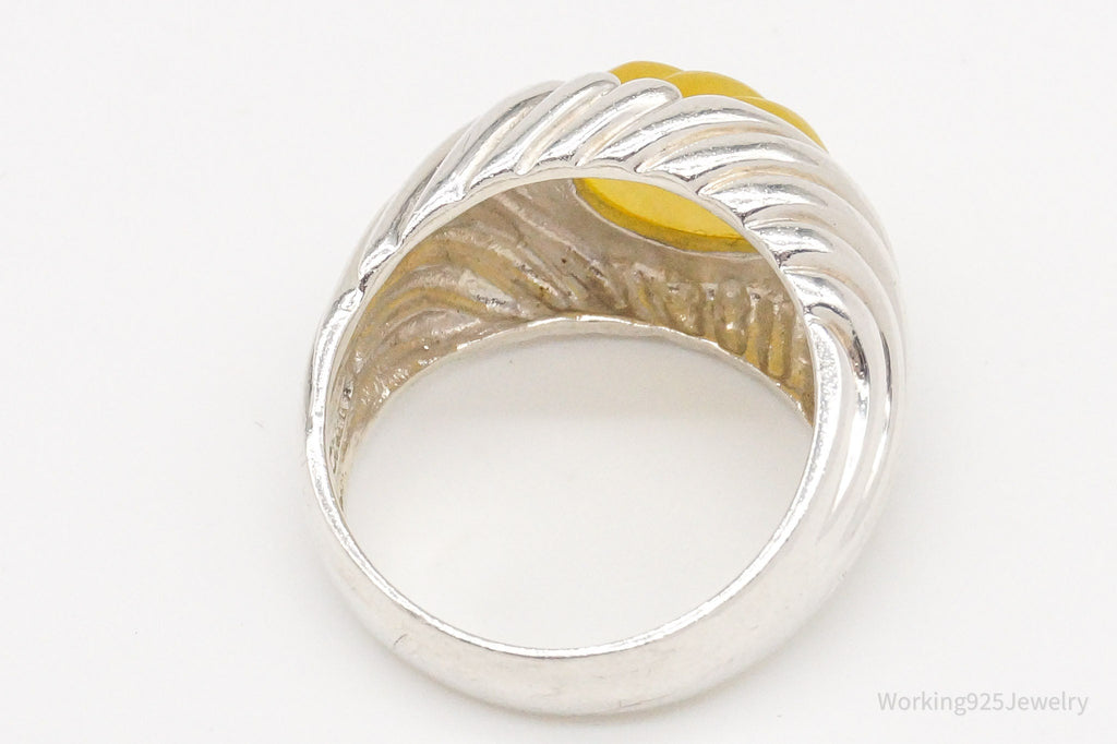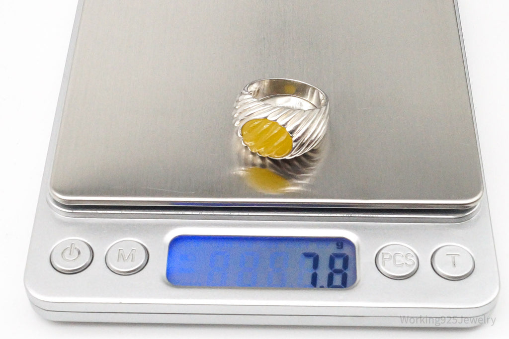 As the nature of testing Jade is a potentially damaging one, a scratch test, we have priced this item based on the value in its design rather than that of any perceived value in the gemstone as it may very well be a manmade Jade rather than one created in nature. Please review photographs for details on item specifics like size and weight. Hallmarks, ring sizes, gram weight, etc. will be shown in photos. If you require additional photos please do not hesitate to ask! I am always happy to provide more information on the items I proudly sell!