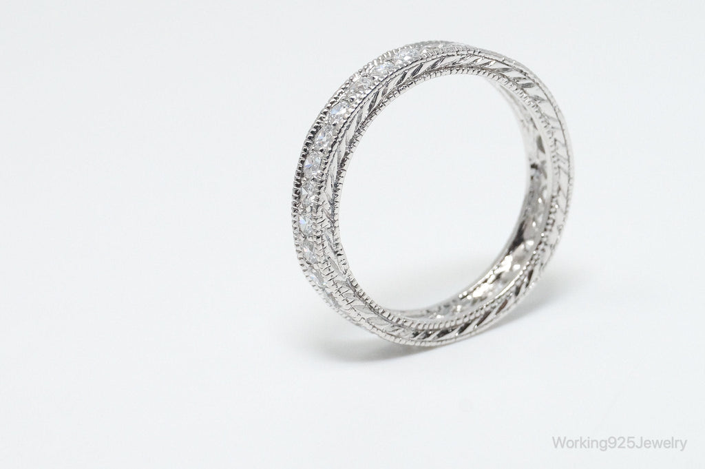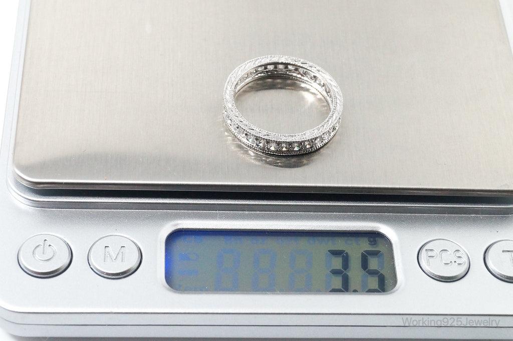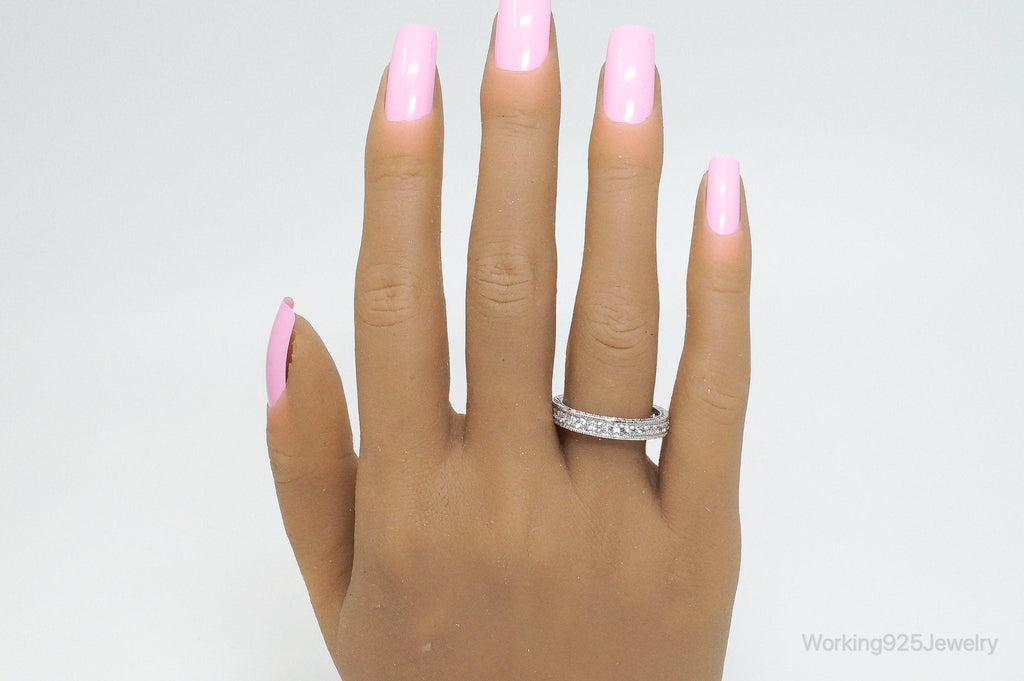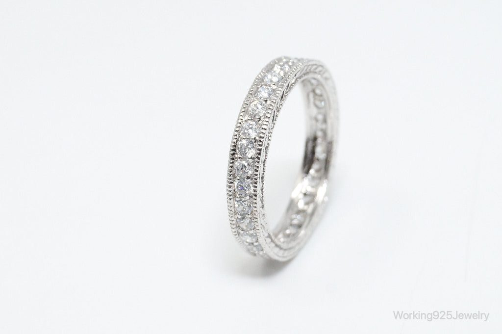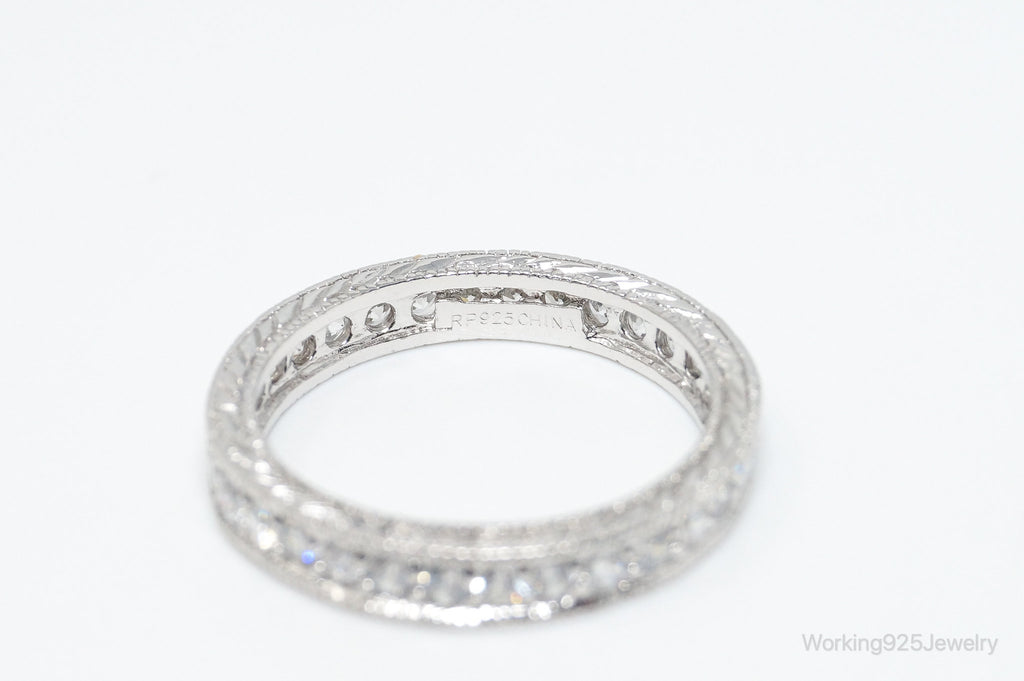 Vintage Designer RP Cubic Zirconia Sterling Silver Band Ring - Size 9