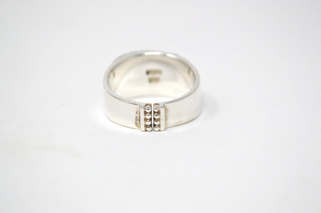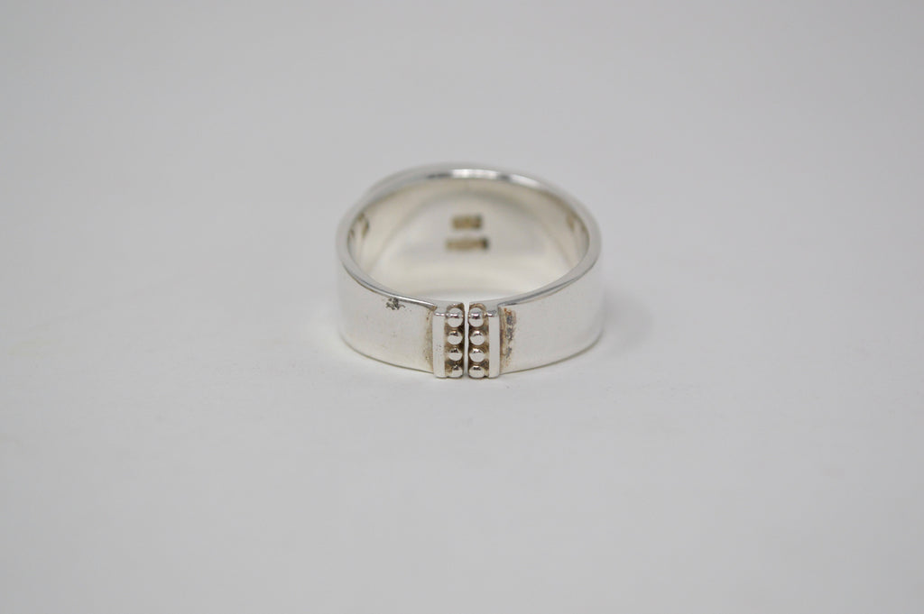 Ring Listings: It is sometimes difficult to determine how a ring will fit without being able to try it on. I always recommend taking your favorite ring to a local jeweler and comparing the way that it sits on a mandrel (ring sizer) with the pictures in the listings prior to purchase. Sometimes wide band rings fit a little differently and I always want my customers to be 100% happy with their purchases! Please let me know if I can help by offering more pictures for size comparison.