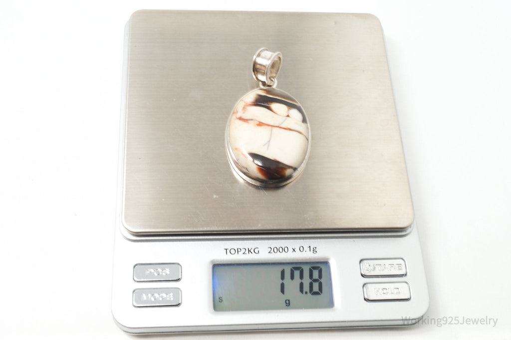 Vintage Designer SAJEN Large Jasper Sterling Silver Necklace Pendant