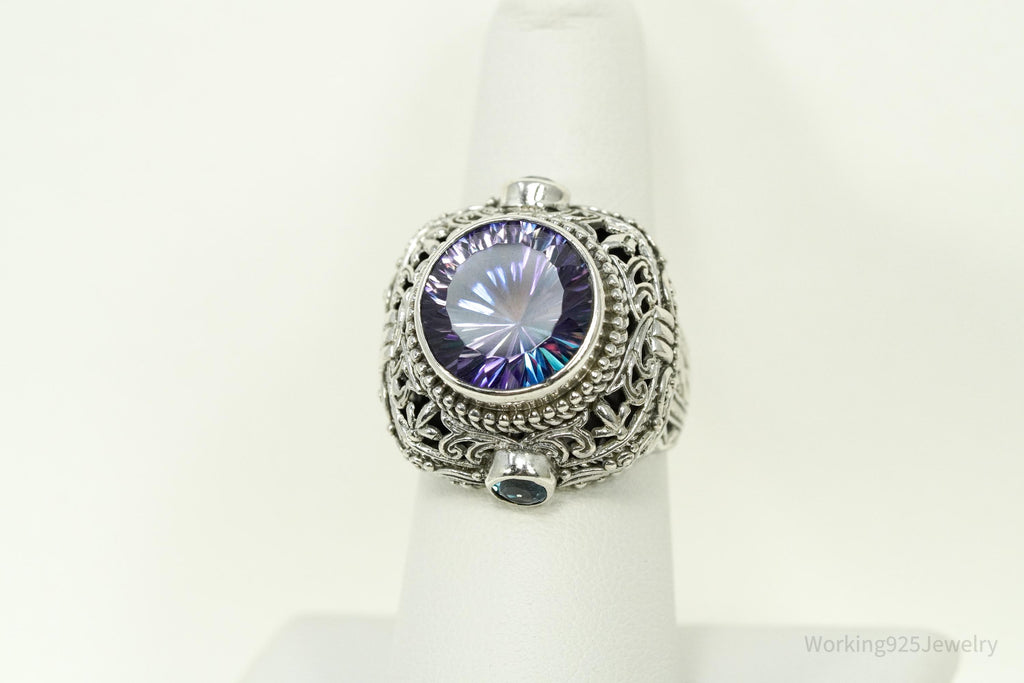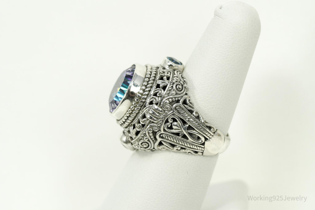 Vintage Designer Sarda Mystic Topaz & Blue Topaz Sterling Silver Ring - Size 7