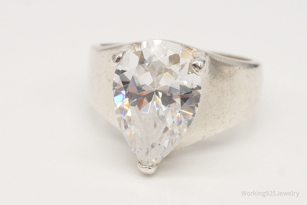 Vintage Designer Seta Large Cubic Zirconia Sterling Silver Ring - Size 8.75