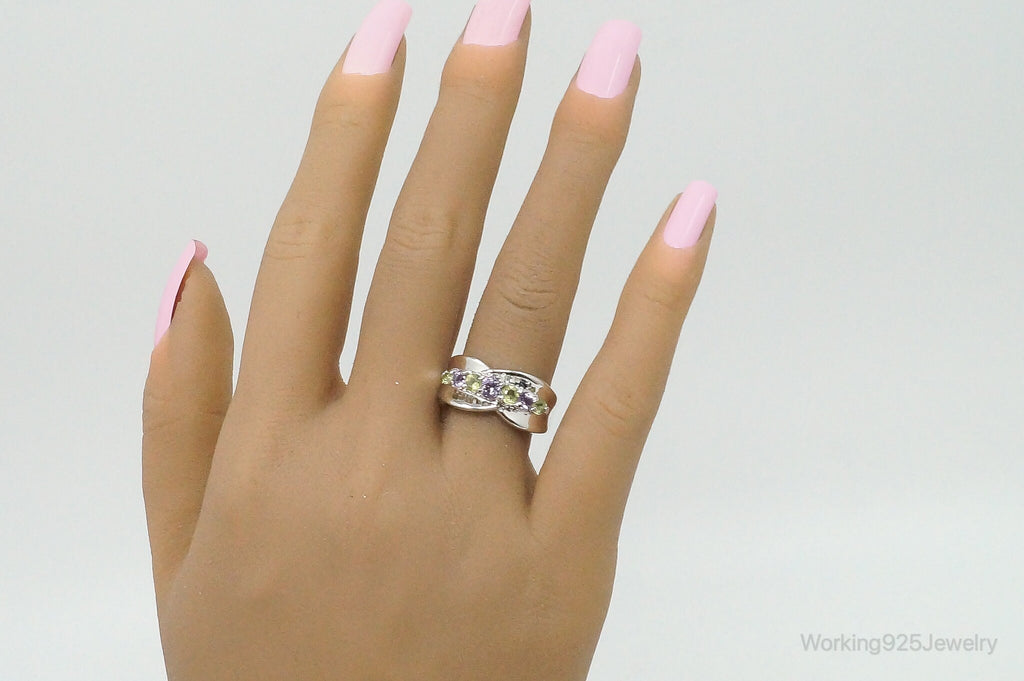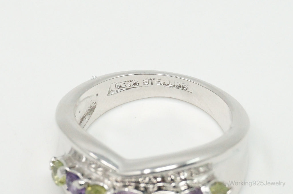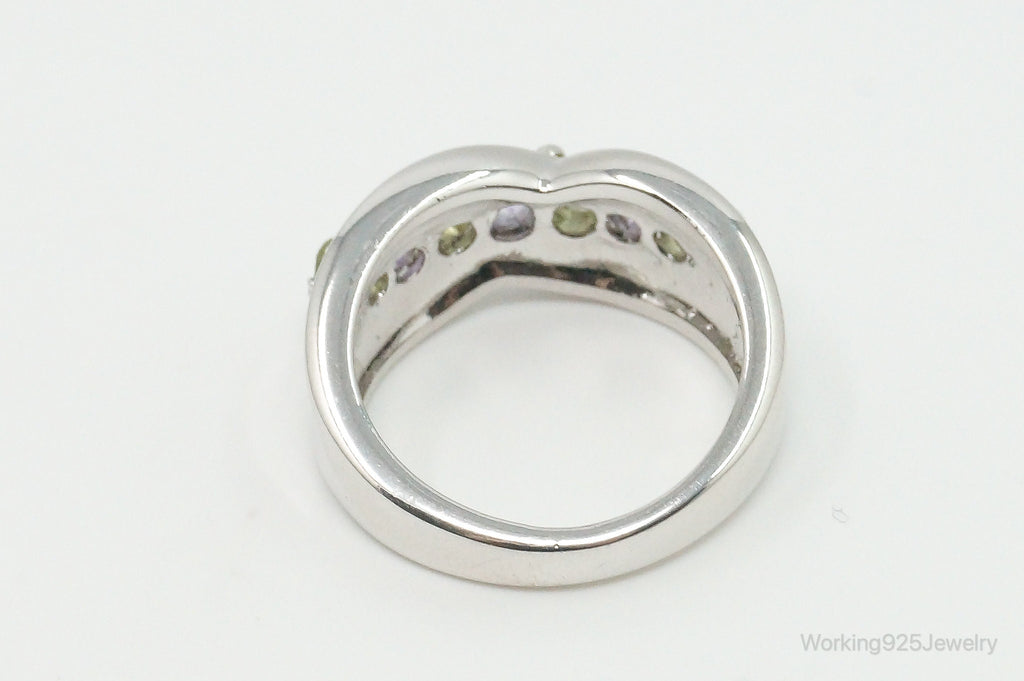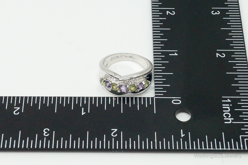 Vintage Designer SETA Peridot Amethyst Sterling Silver Ring - Size 6.75