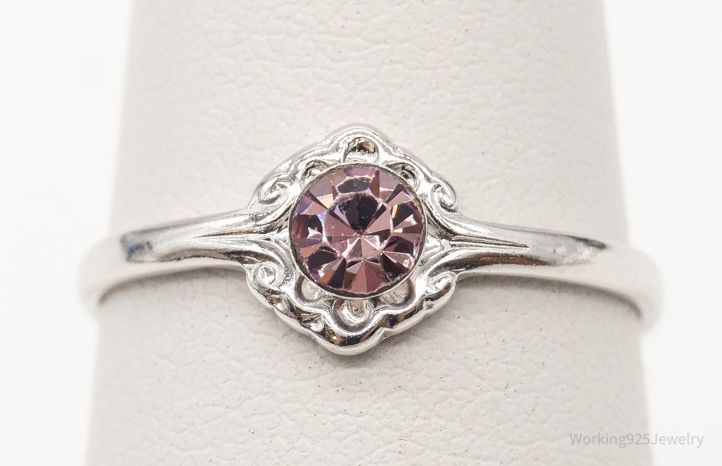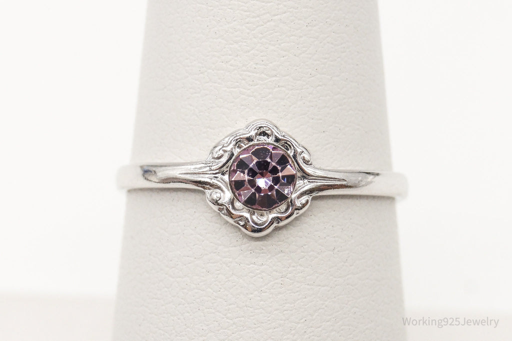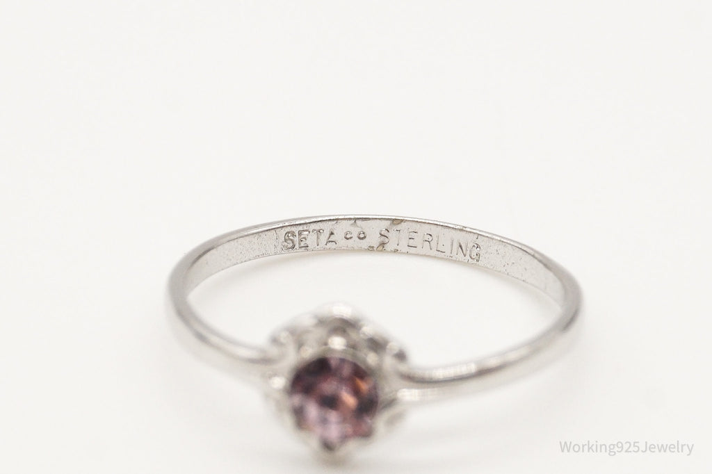 Vintage Designer SETA Purple Crystal Sterling Silver Ring - Size 7