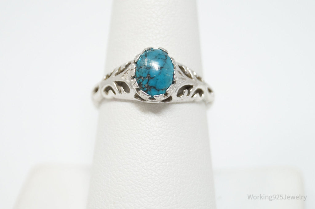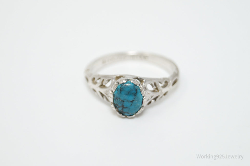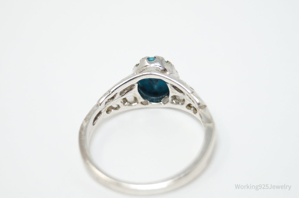 Vintage Designer SETA Southwestern Turquoise Sterling Silver Ring - Sz 7.75