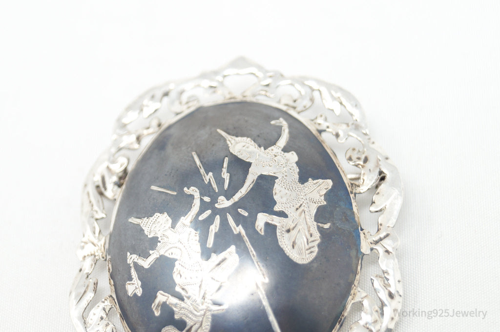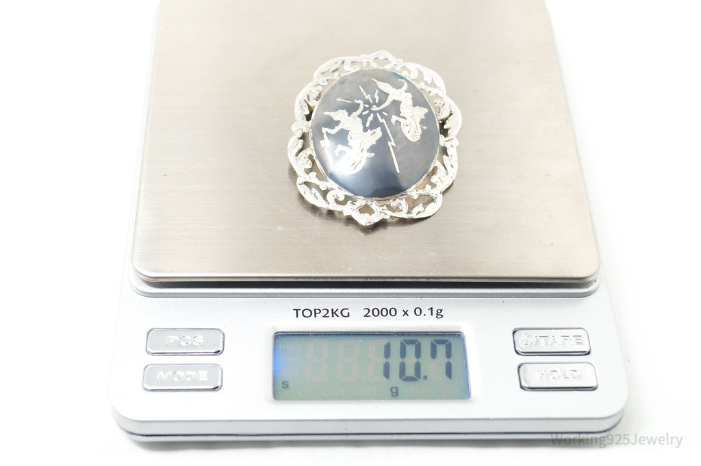 Vintage Designer SIAM NIELLO Dancers Enamel Sterling Silver Brooch Pin