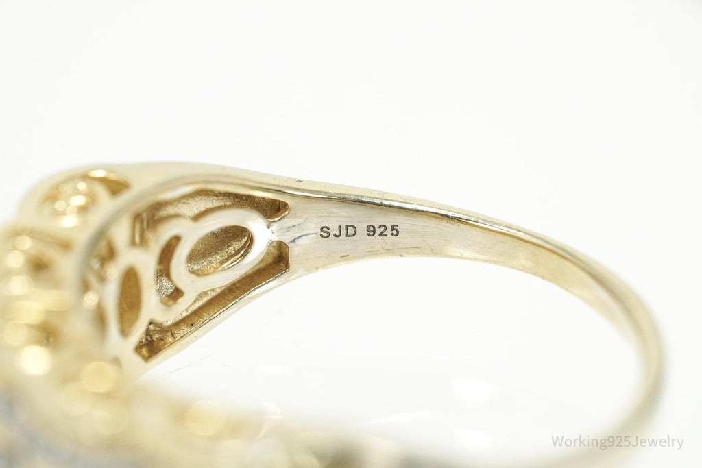 Vintage Designer SJD Diamonds Gold Vermeil Sterling Silver Ring - Size 12
