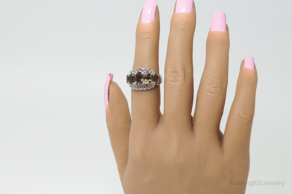 Vintage Designer Smoky Topaz Sterling Silver Statement Ring - Size 6.75