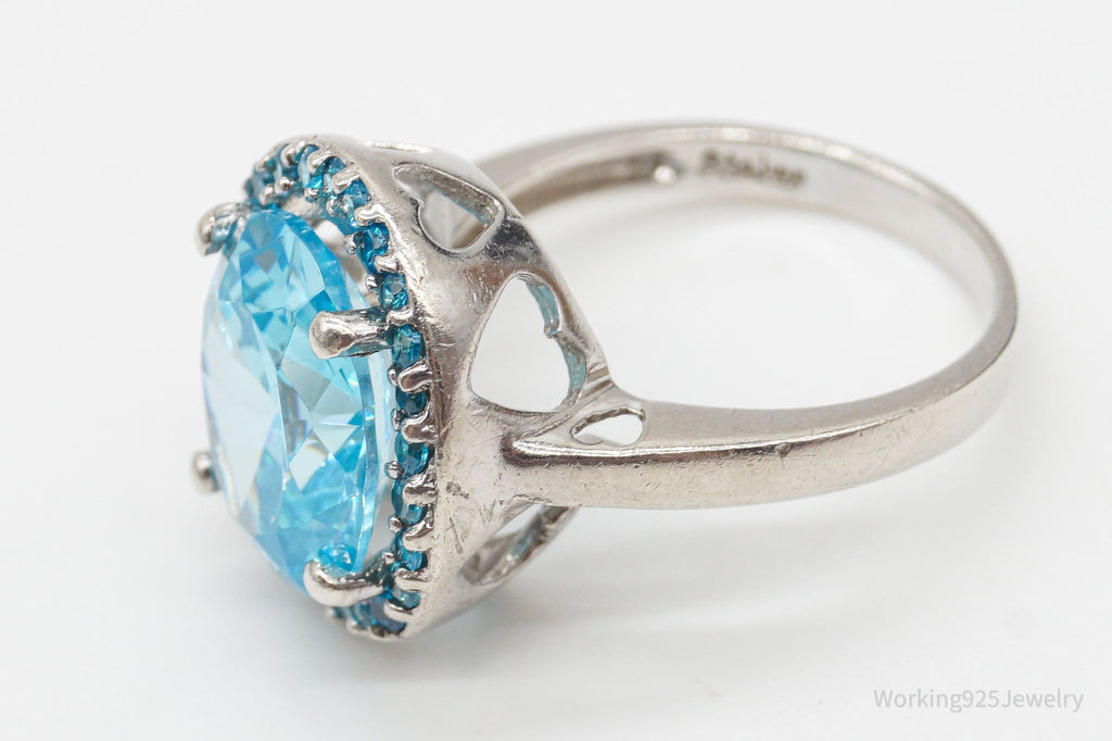 Vintage Designer Stauer Blue Cubic Zirconia Sterling Silver Ring - Size 10
