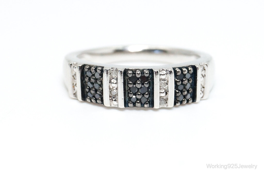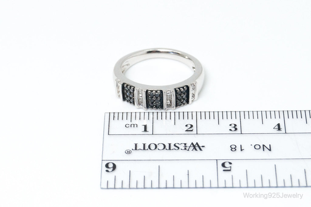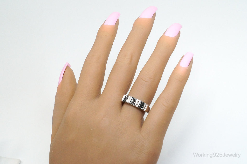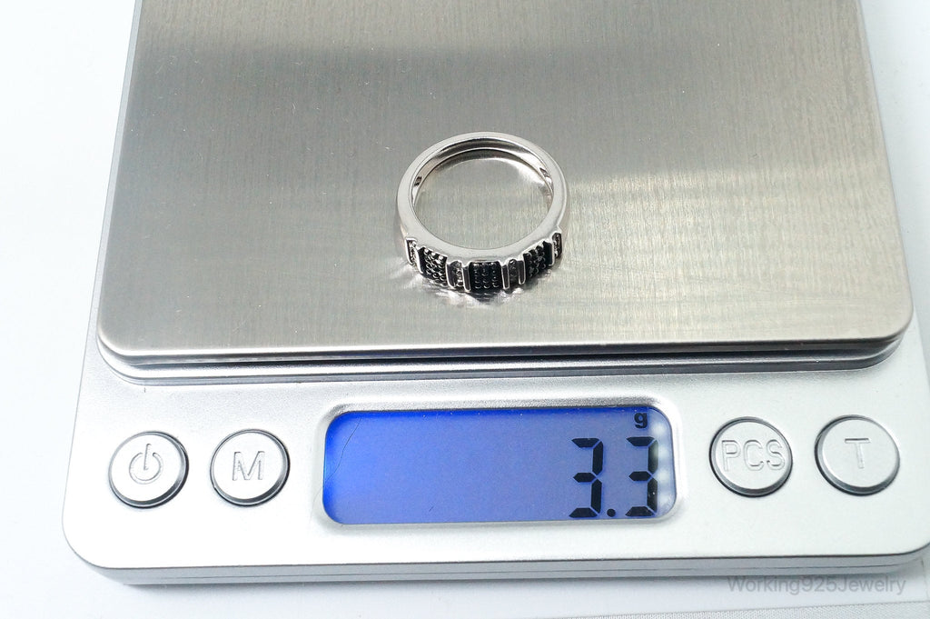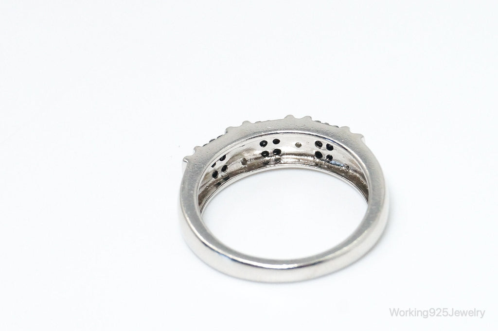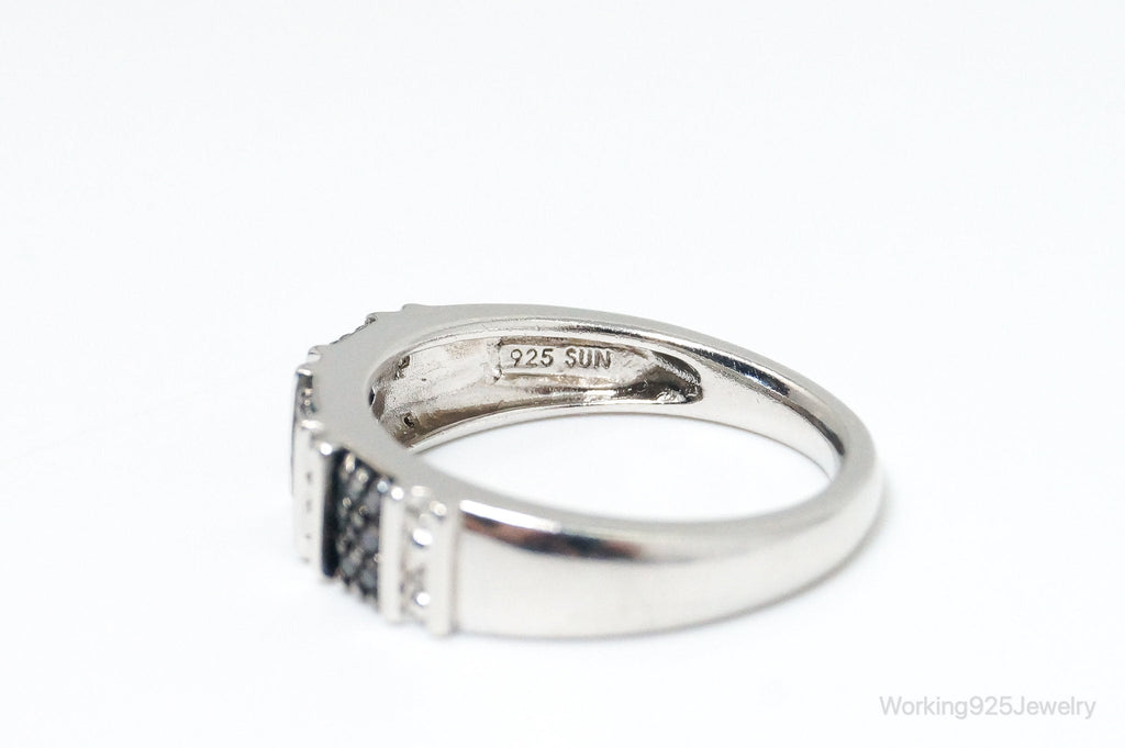 Vintage Designer SUN Cubic Zirconia Black Onyx Sterling Silver Ring - SZ 7