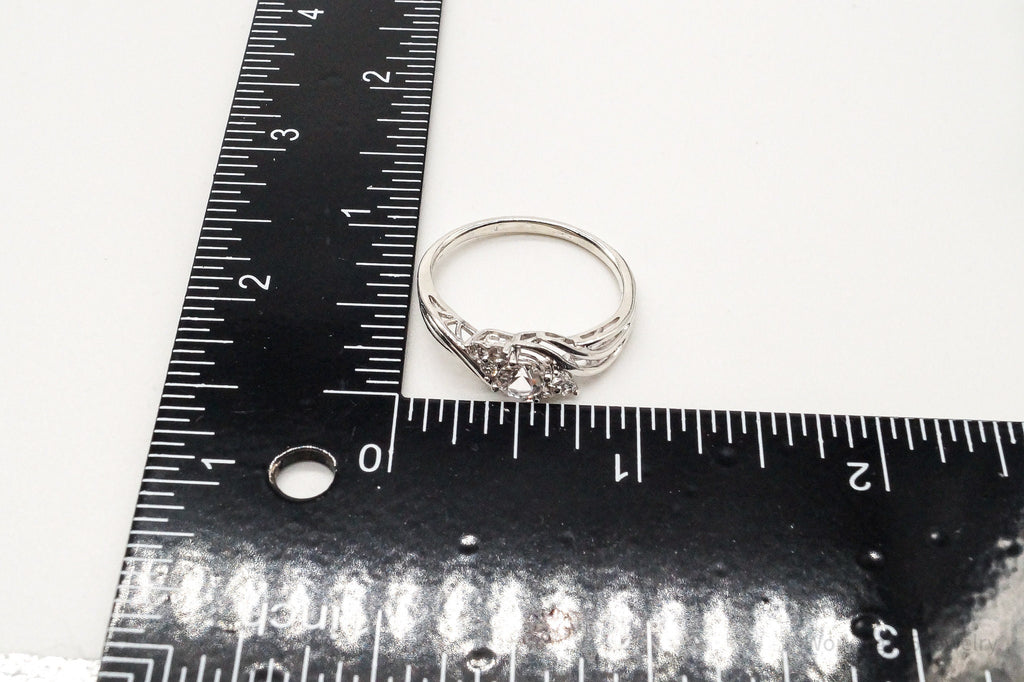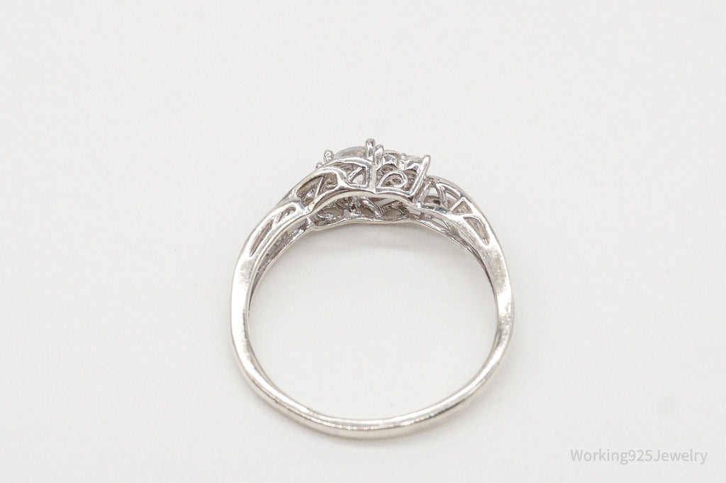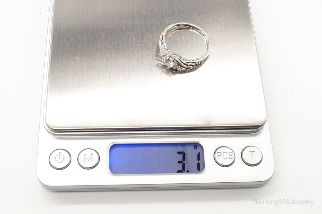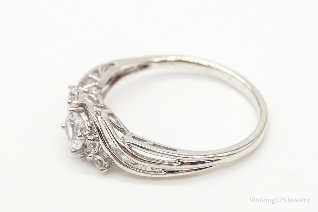 Vintage Designer SUN Cubic Zirconia Sterling Silver Ring - Size 12