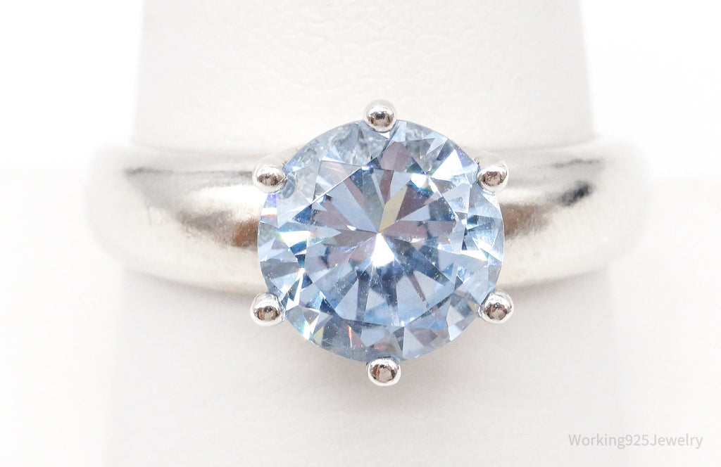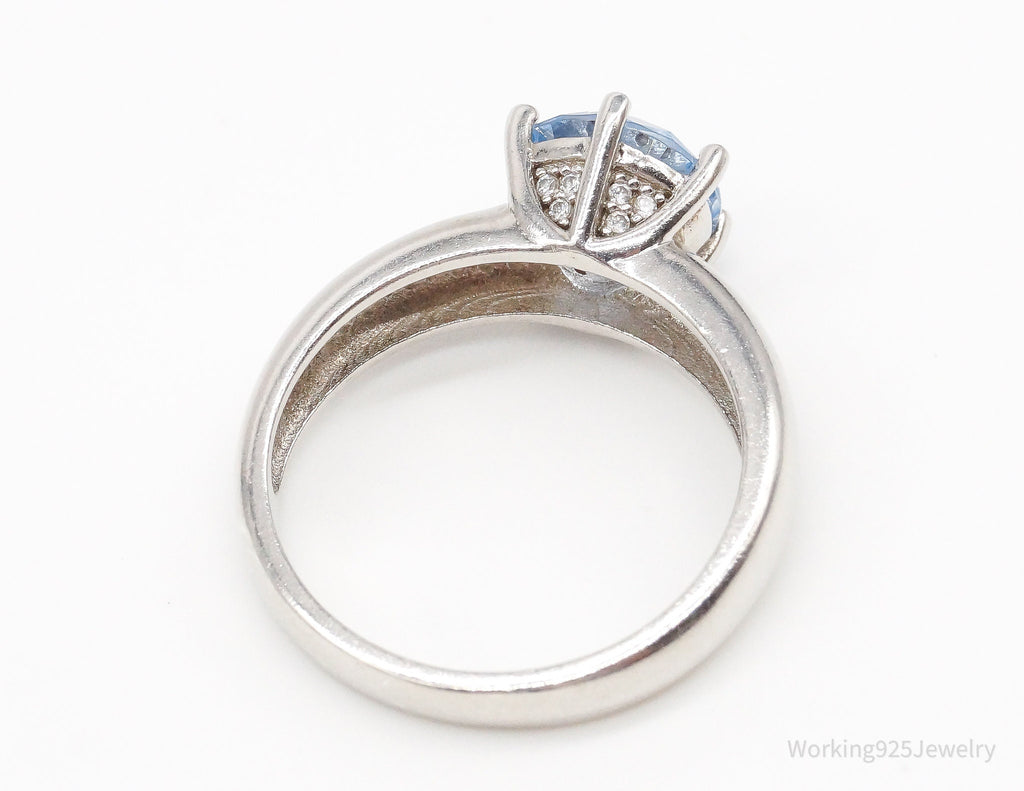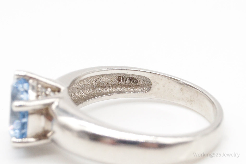 Vintage Designer SW Blue & White Cubic Zirconia Sterling Silver Ring - Size 9
