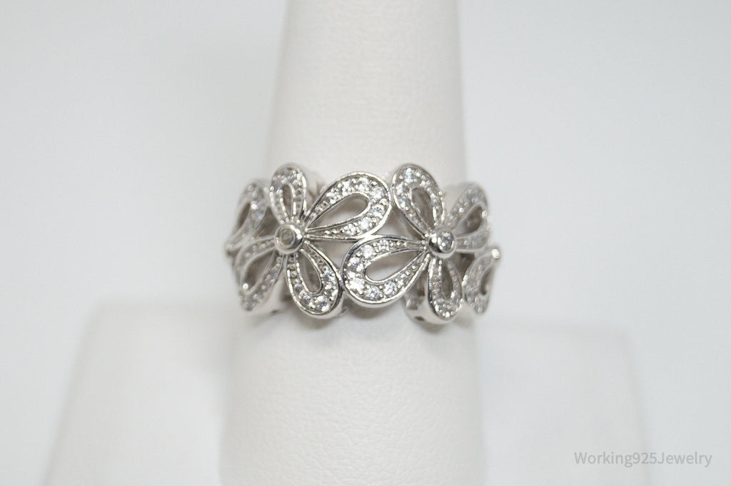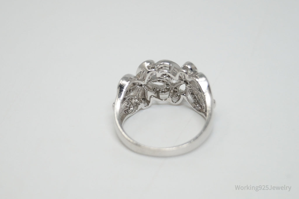 Vintage Designer SW Cubic Zirconia Floral Sterling Silver Ring - Sz 9