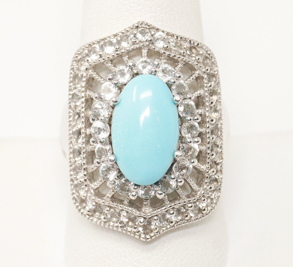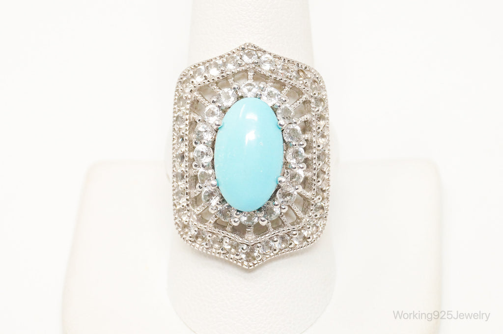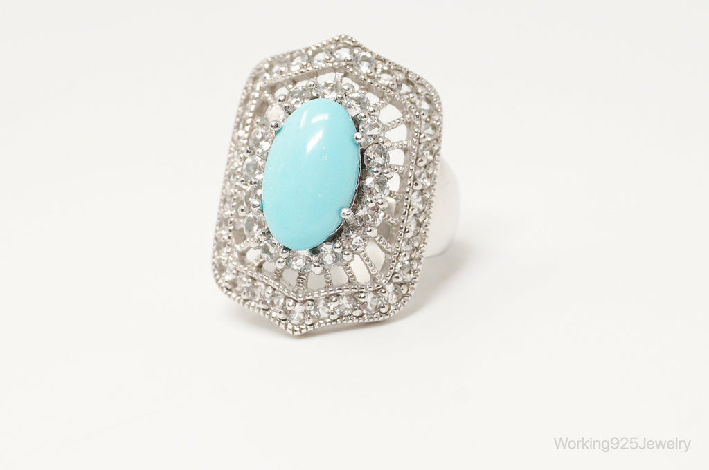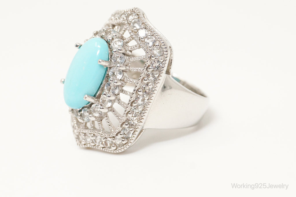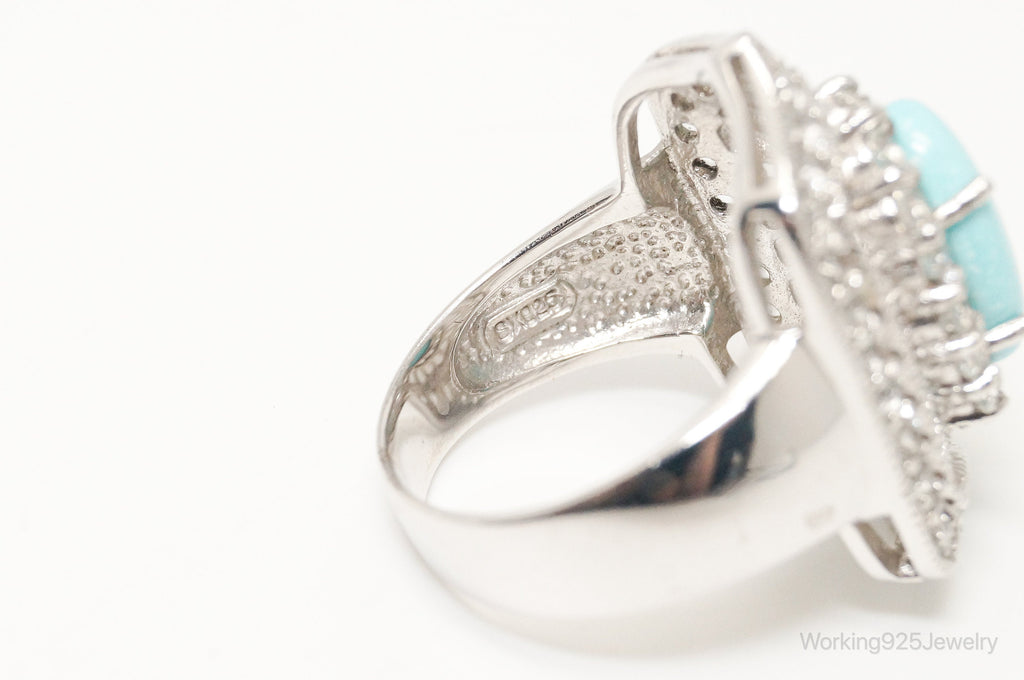 Vintage Designer SX Large Turquoise CZ Sterling Silver Ring - Size 9.75