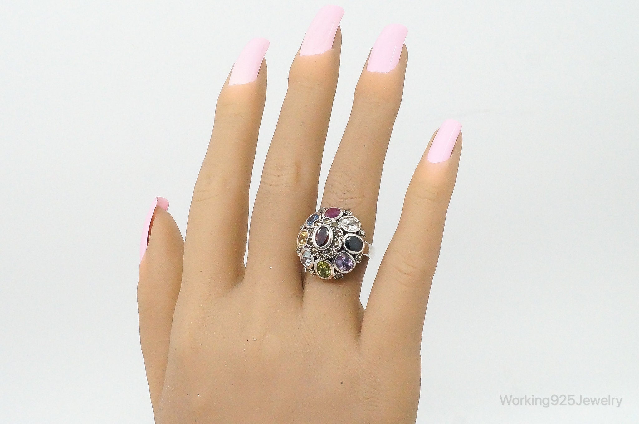 Vintage Designer SX Multi Gem Art Deco Sterling Silver Ring - Size 7