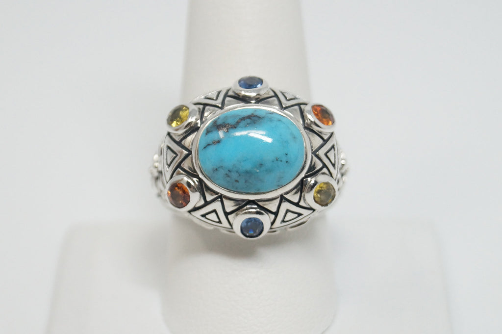Vintage Designer SX Multi Gem Sterling Silver Ring - Size 10