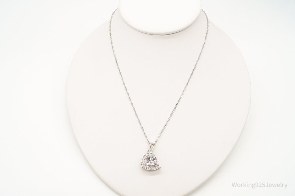 Vintage Designer TGGC Art Deco Cubic Zirconia Sterling Silver Necklace