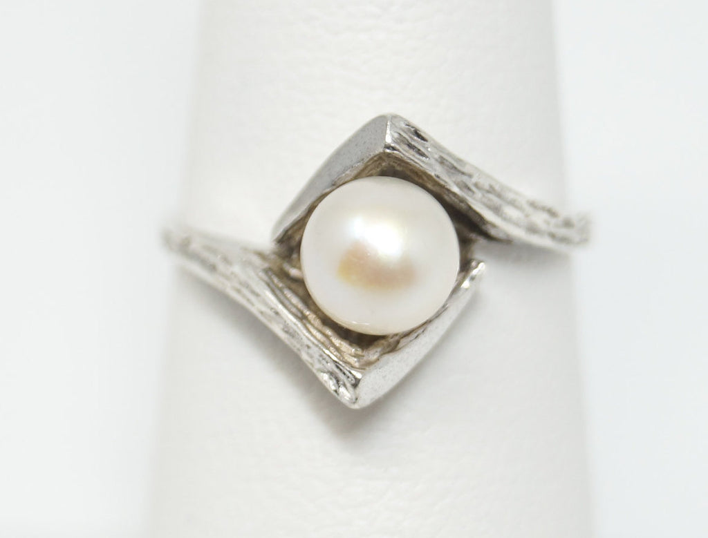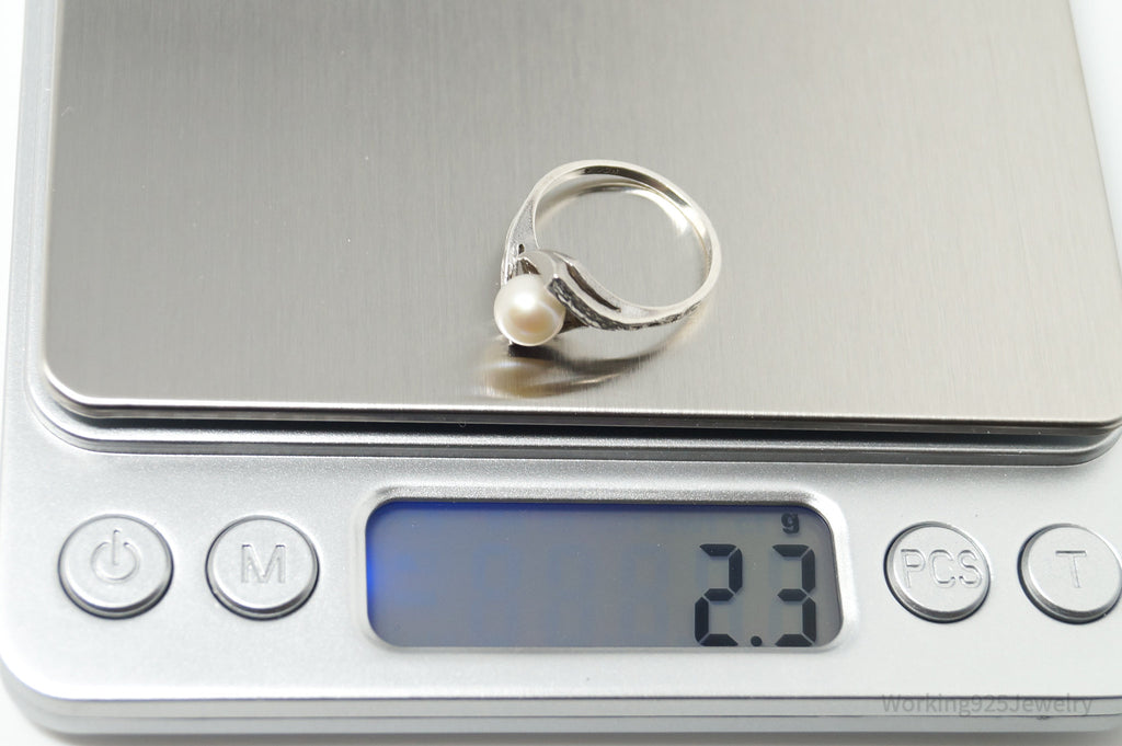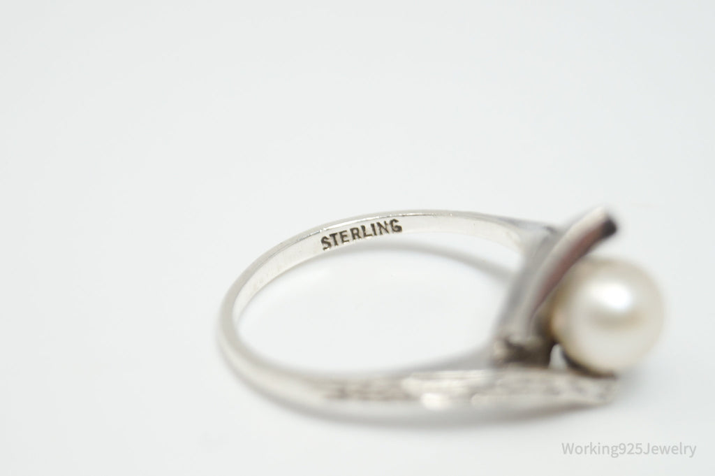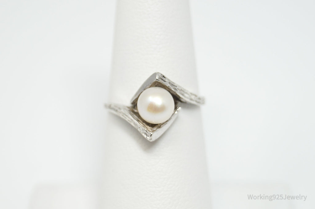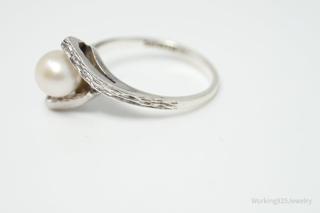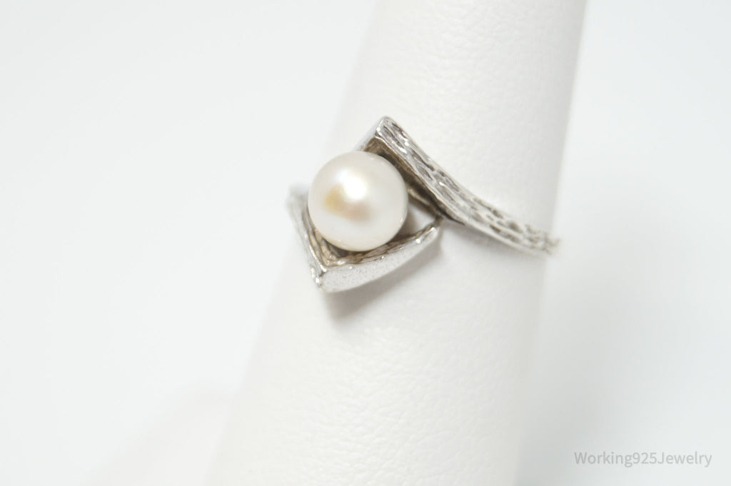 Vintage Designer Urata Art Deco Faux Pearl Sterling Silver Ring - Size 6.25