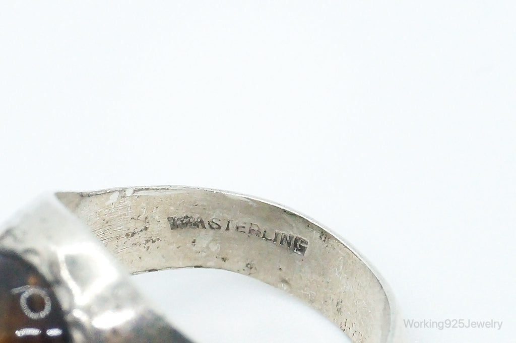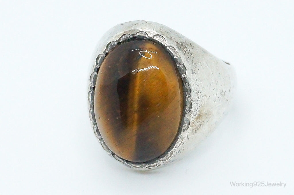 Vintage Designer WM Co Tigers Eye Sterling Silver Ring - Size 9.25