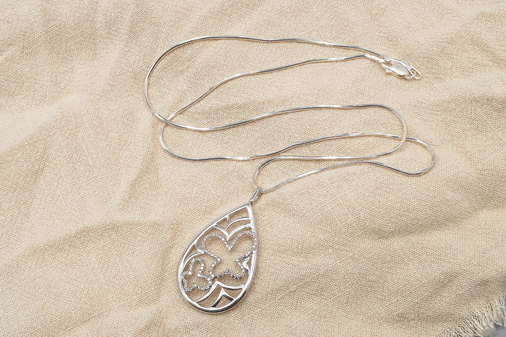 Vintage Diamond Butterflies Sterling Silver Necklace 20"