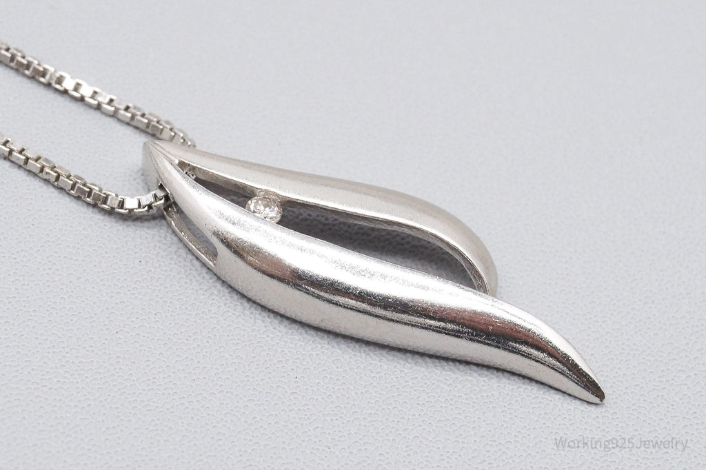 Vintage Diamond Sterling Silver Necklace 18"
