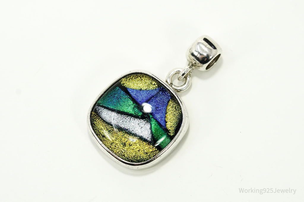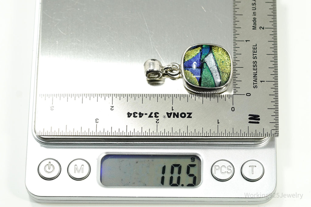 Vintage Dichroic Glass Sterling Silver Pendant 1.5"
