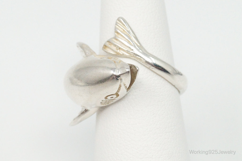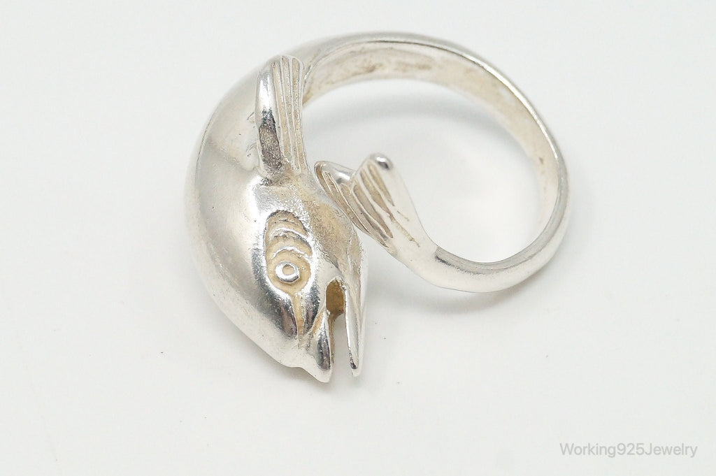 Vintage Dolphin Wrap Sterling Silver Ring - Size 5.25
