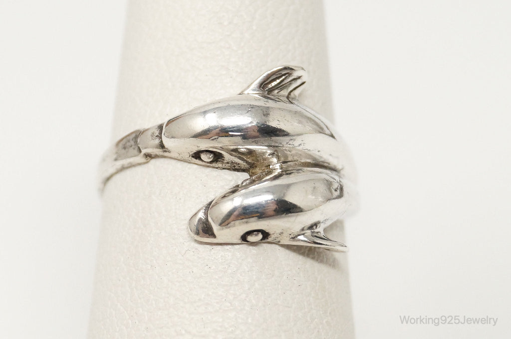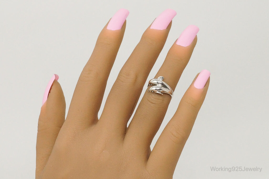 Vintage Dolphins Sterling Silver Wrap Ring - Size 4.75