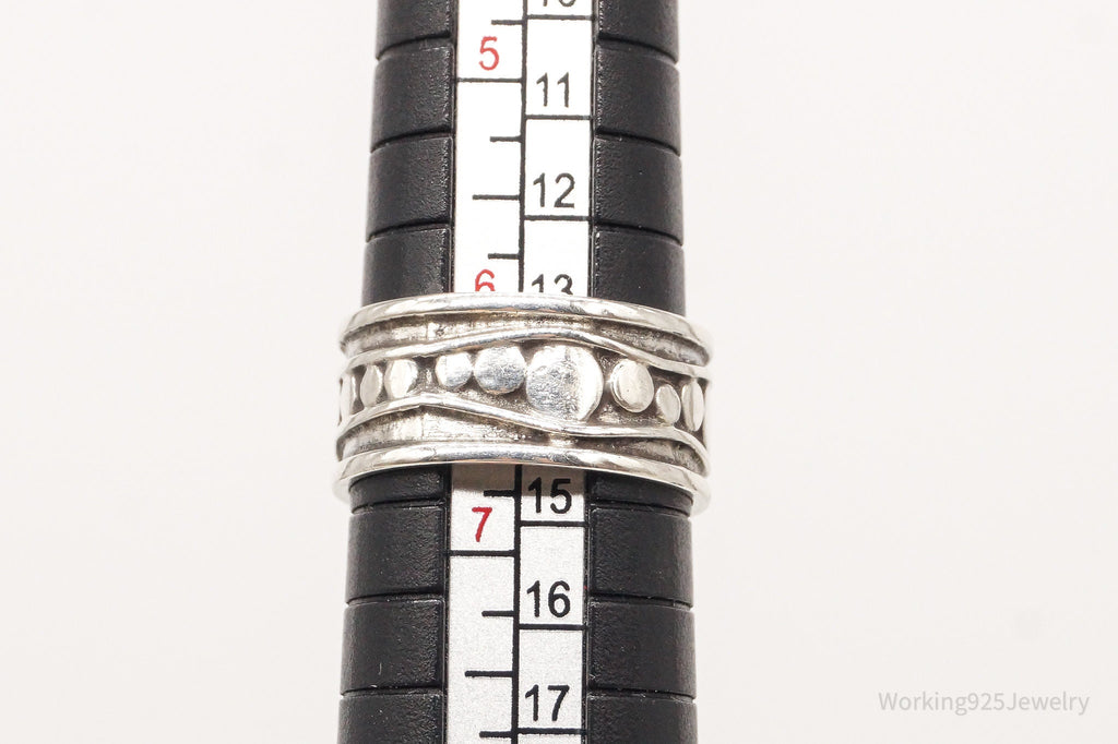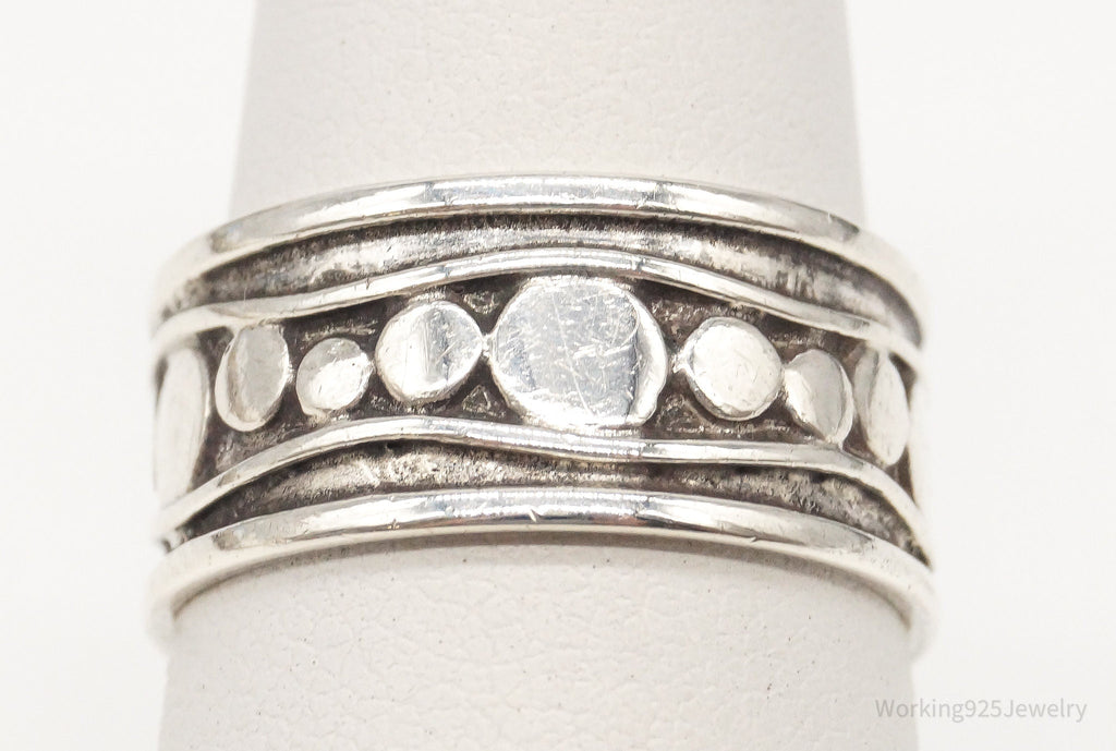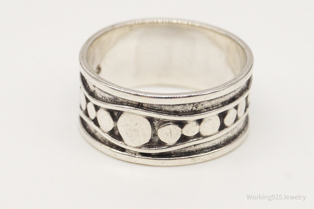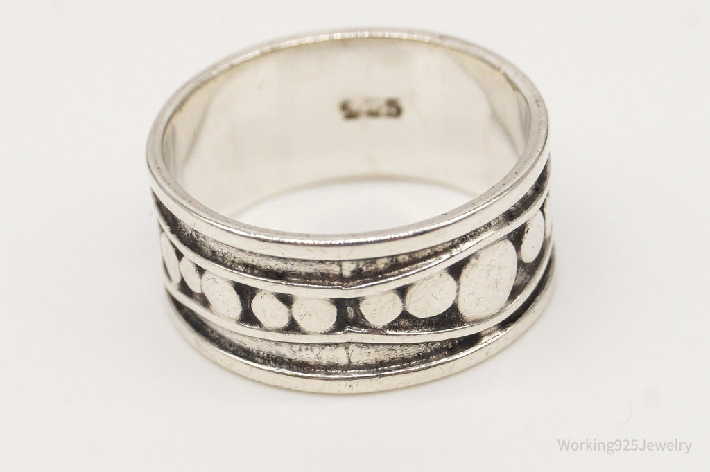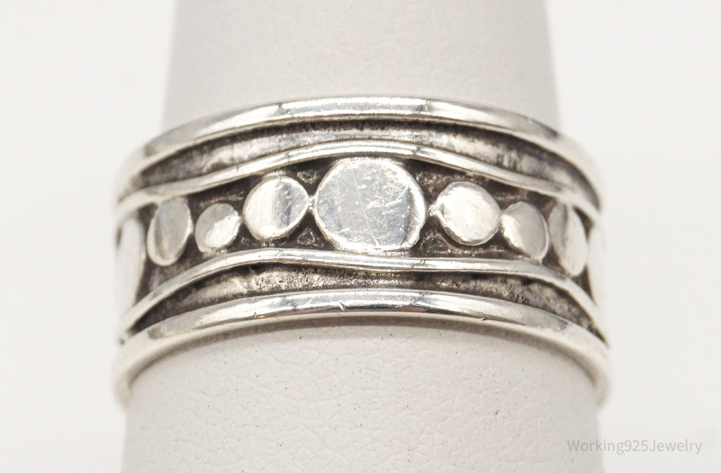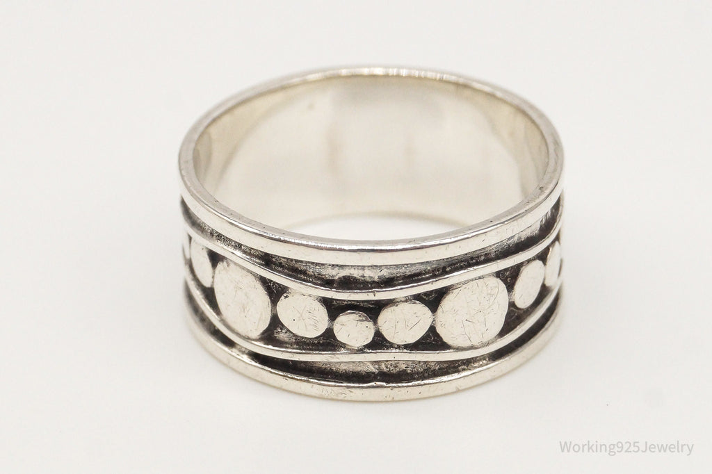Vintage Dotted Modernist Style Sterling Silver Band Ring - Size 6.5