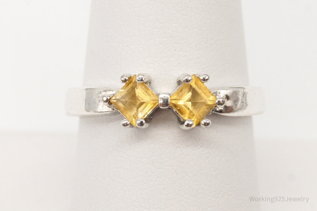 Vintage Double Citrine Sterling Silver Ring - Size 8