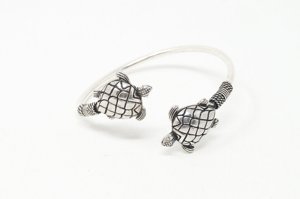 Vintage Double Ocean Sea Turtle Sterling Silver Wrap Bracelet