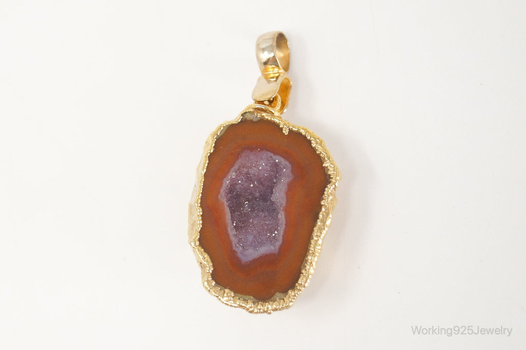 Vintage Druzy Agate Geode Gold Vermeil Sterling Silver Necklace Pendant