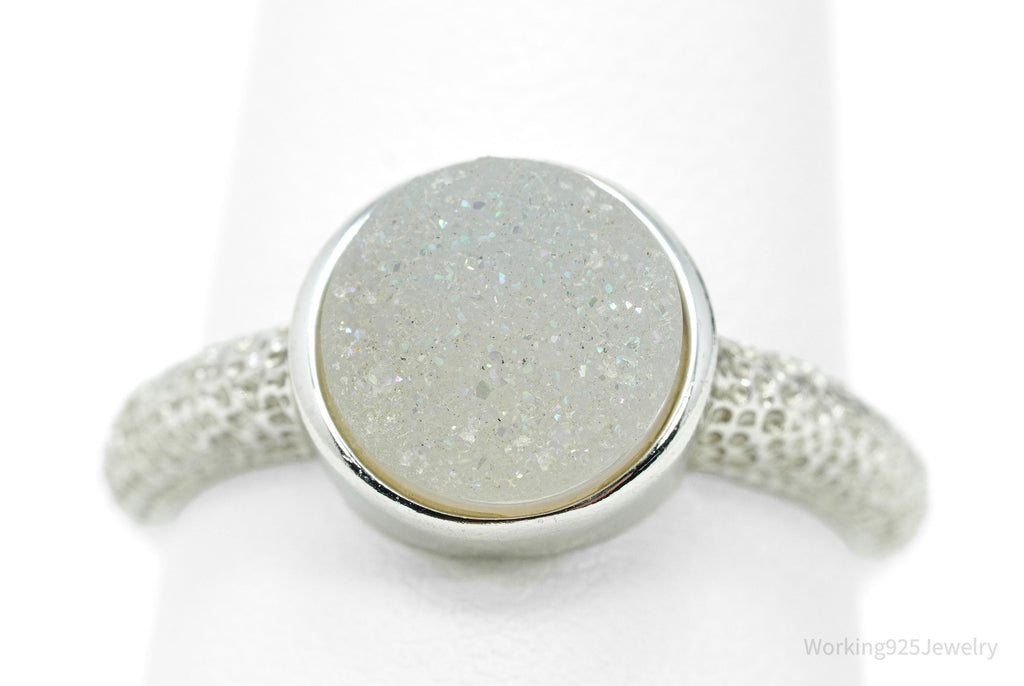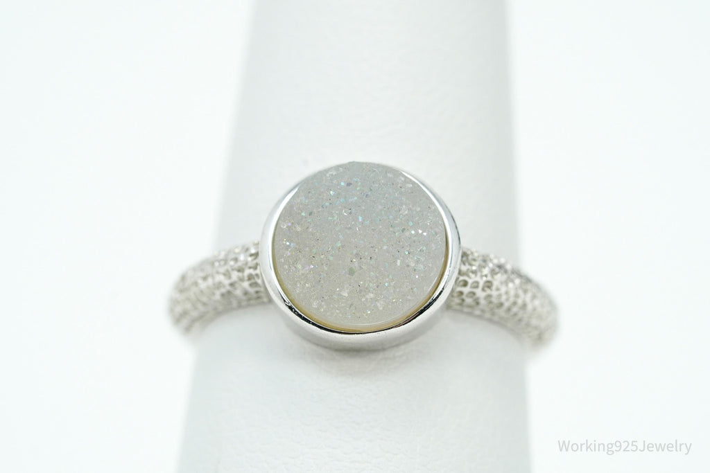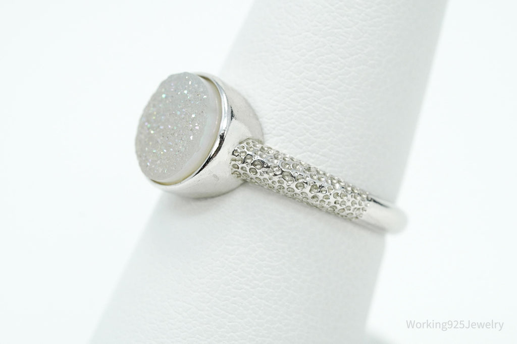 Vintage Druzy Quartz Sterling Silver Ring - Size 7.25