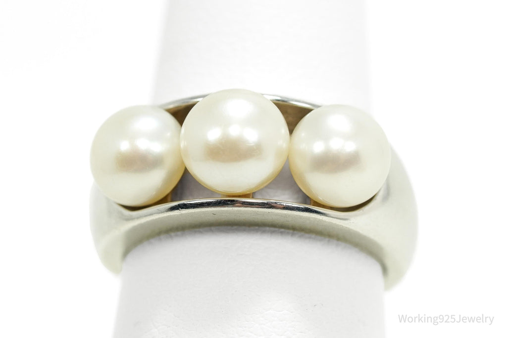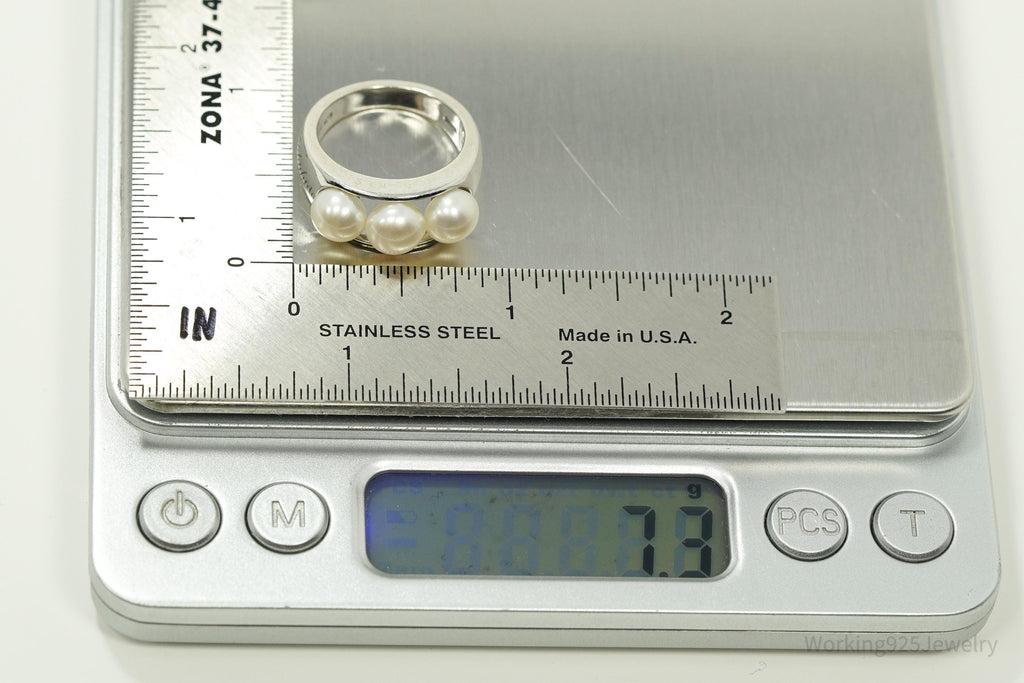 Vintage EA Pearl Sterling Silver Ring - Size 7