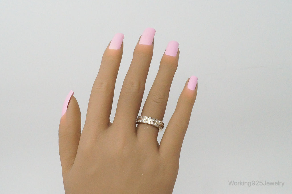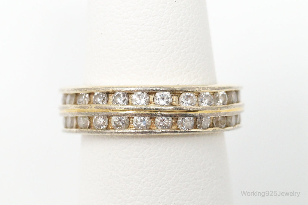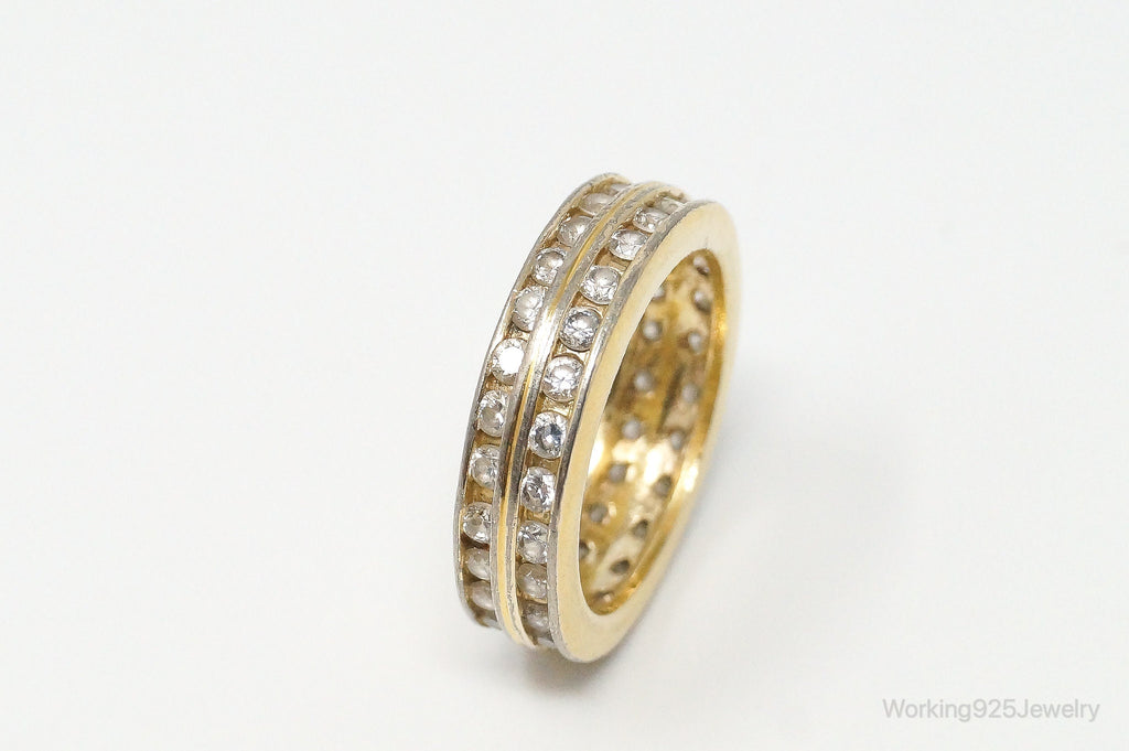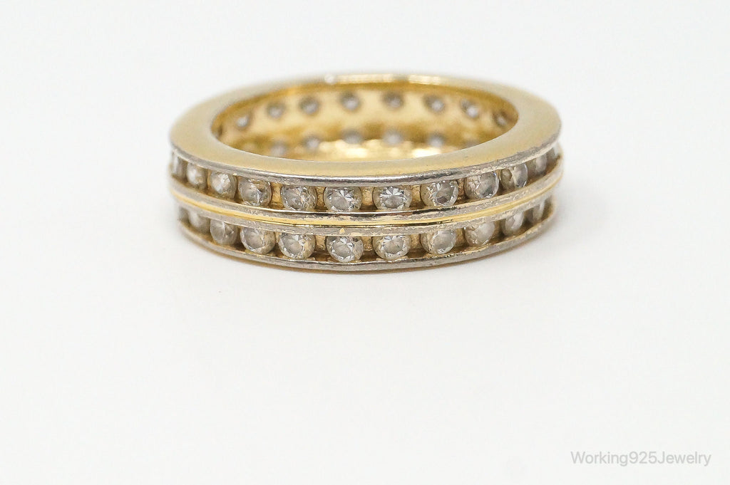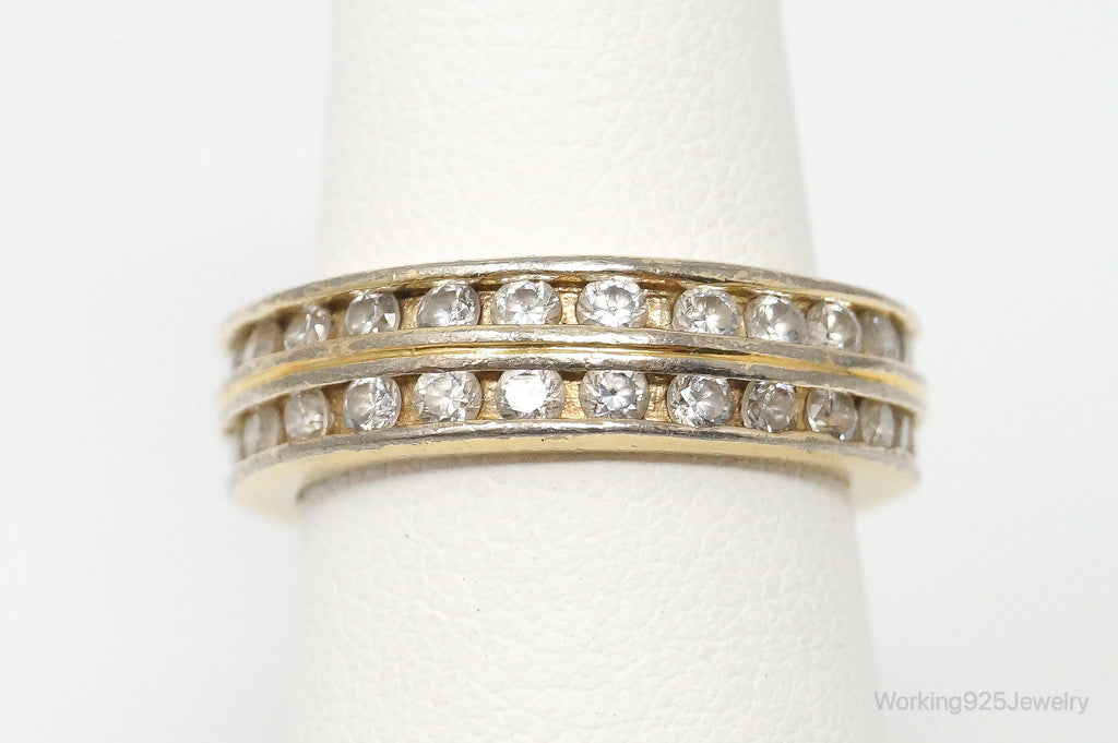 Vintage EDCO Cubic Zirconia Gold Vermeil Sterling Silver Band Ring - Size 6