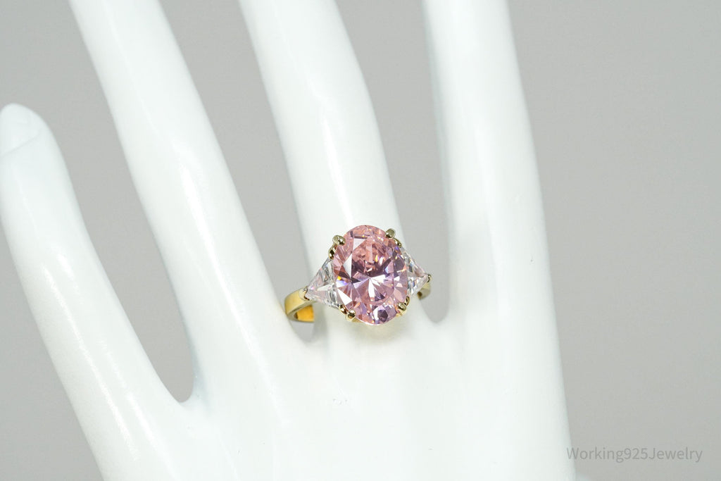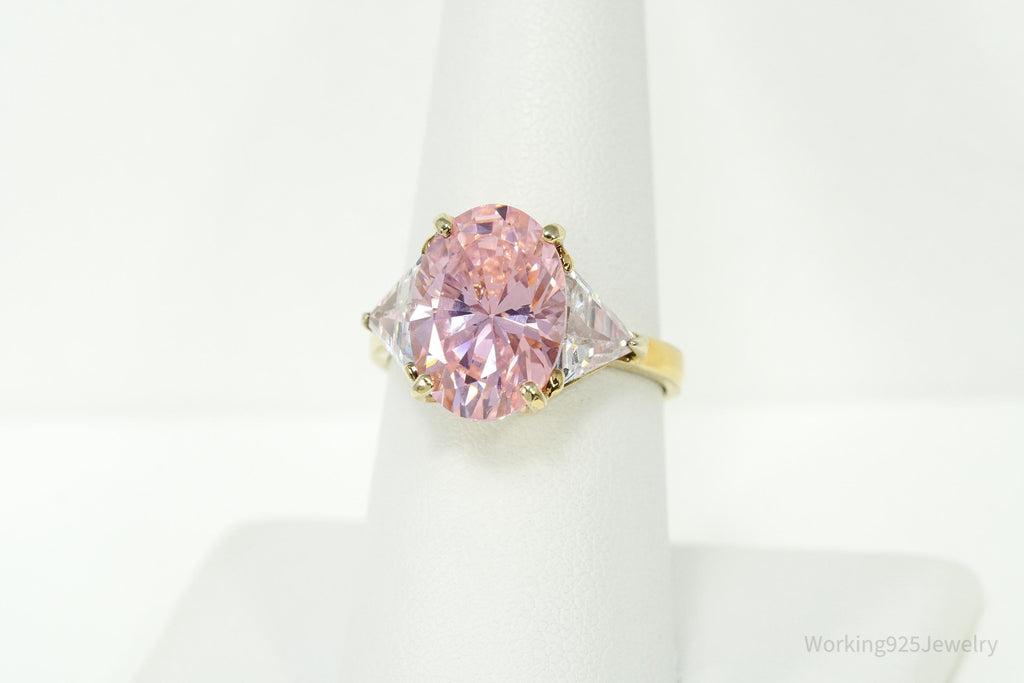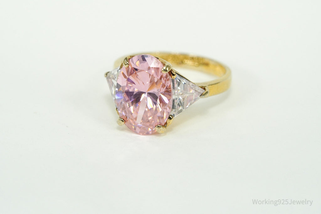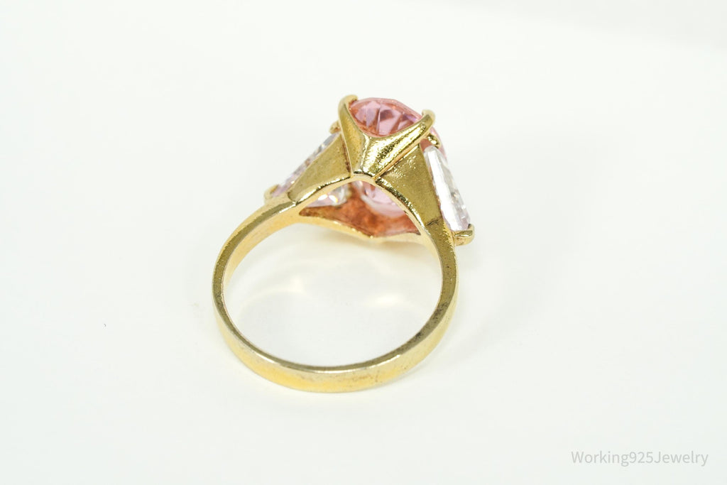 Vintage EDCO Pink & White Cubic Zirconia Gold Vermeil Sterling Silver Ring Size 8