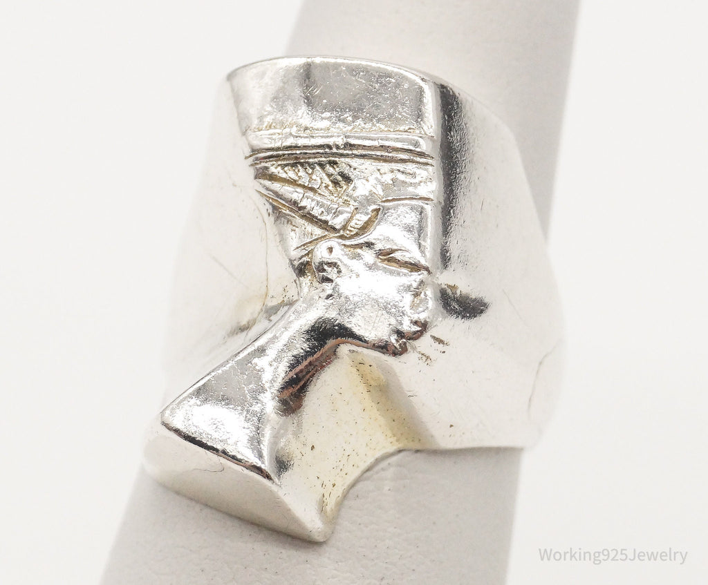 Vintage Egyptian Queen Nefertiti Silver Ring - Size 5.25