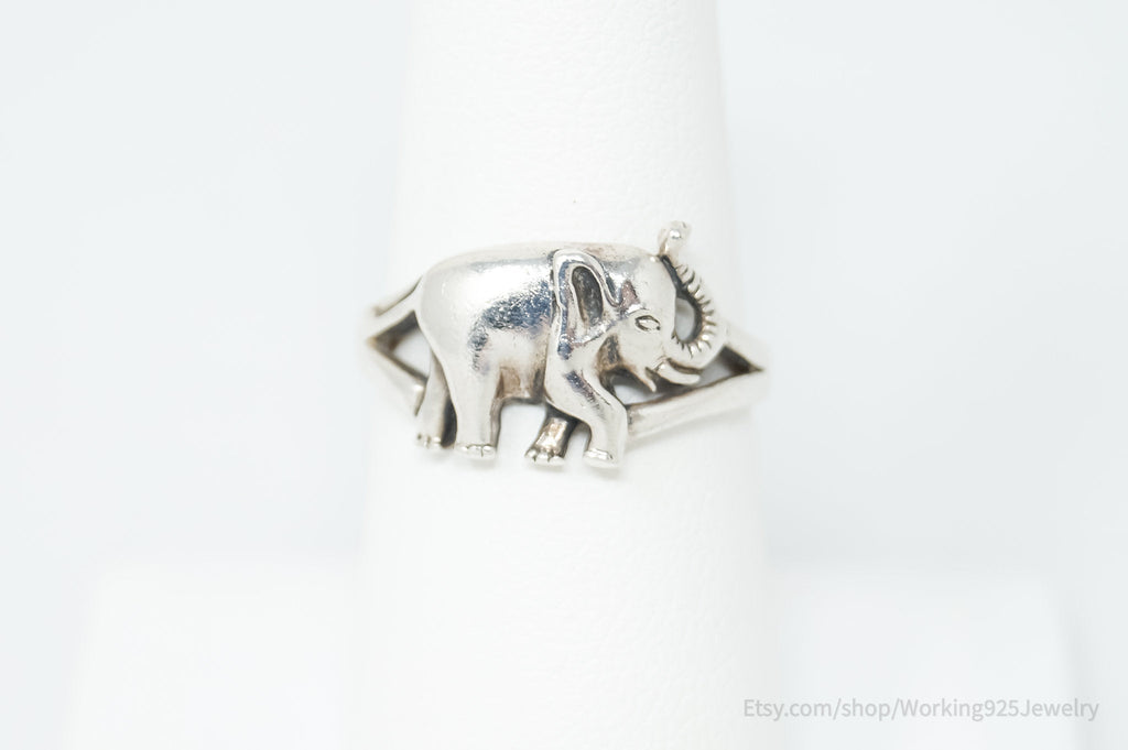 Vintage Elephant Safari Good Luck Sterling Silver Ring - Size 6.75