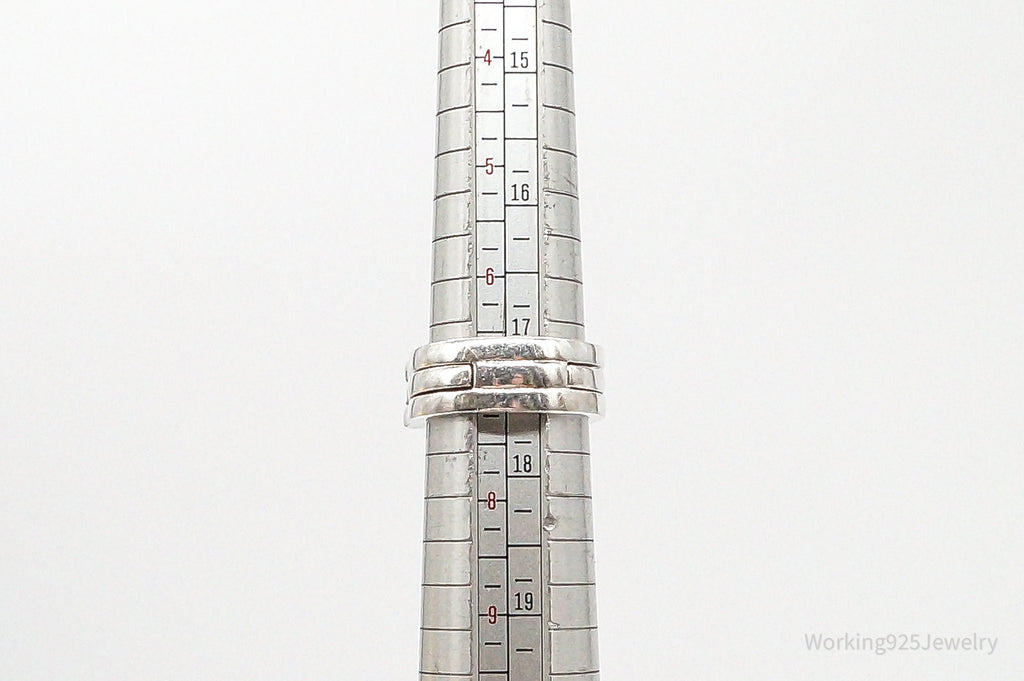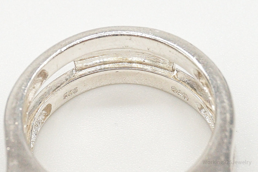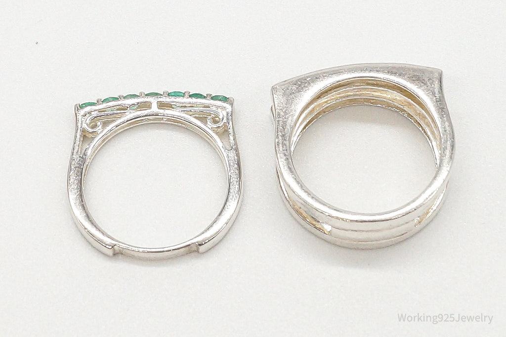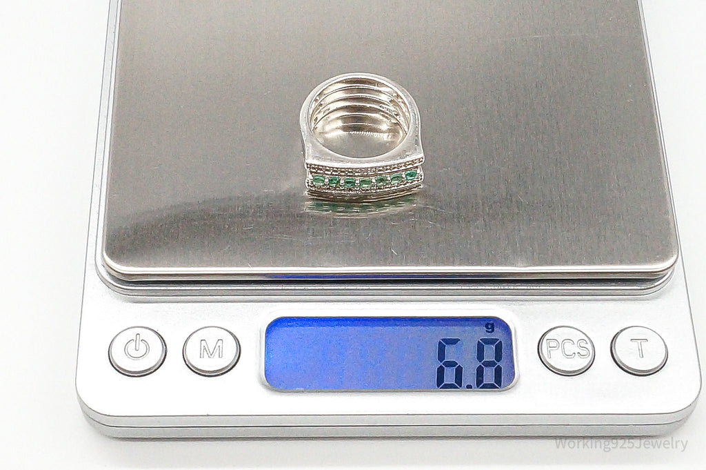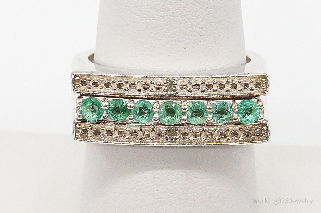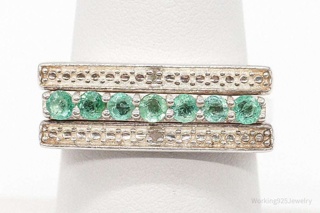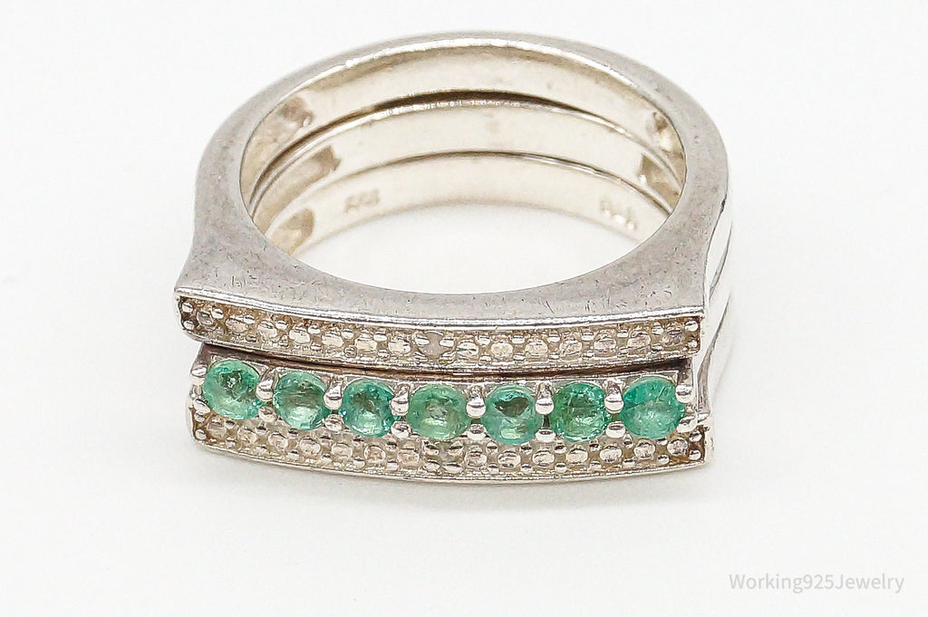 Vintage Emerald 2 Diamond Sterling Silver Ring - Size 7.25